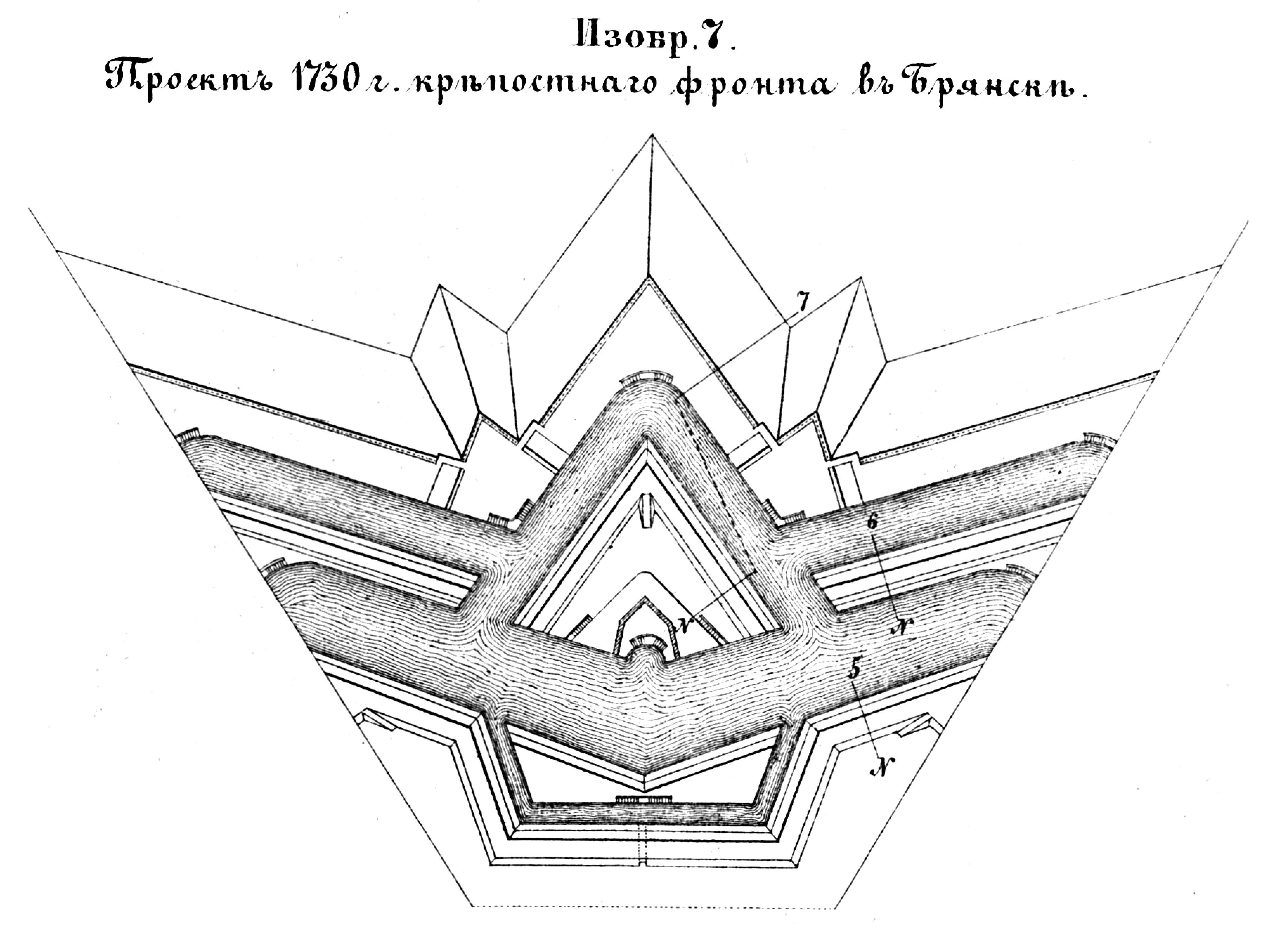 Способы укрепления. Изобр.7. Проект 1730 года крепостного фронта в Брянске