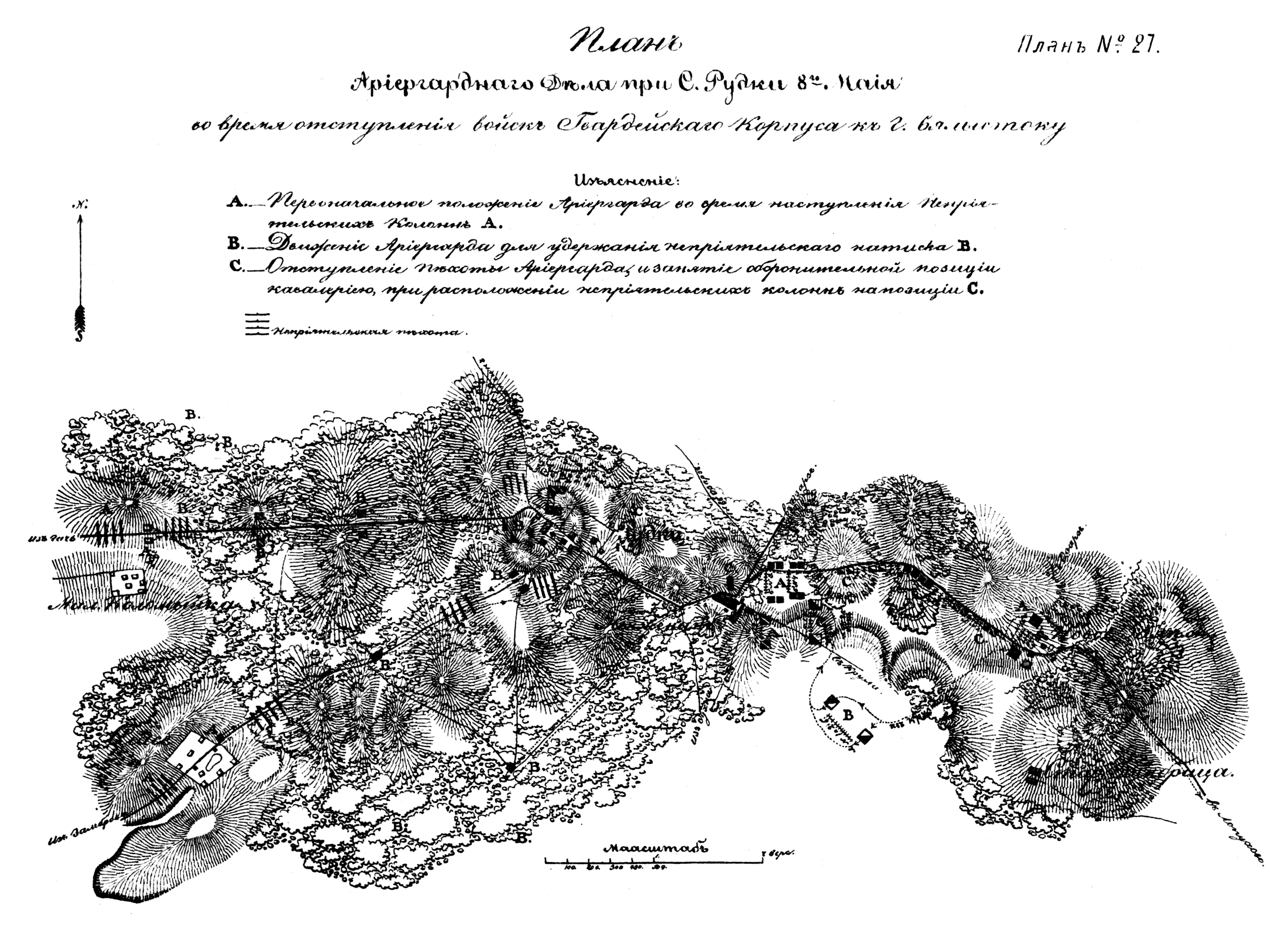 План арьергардного дела при с.Рудки 8 мая во время отступления войск Гвардейского корпуса к г.Бялыстоку