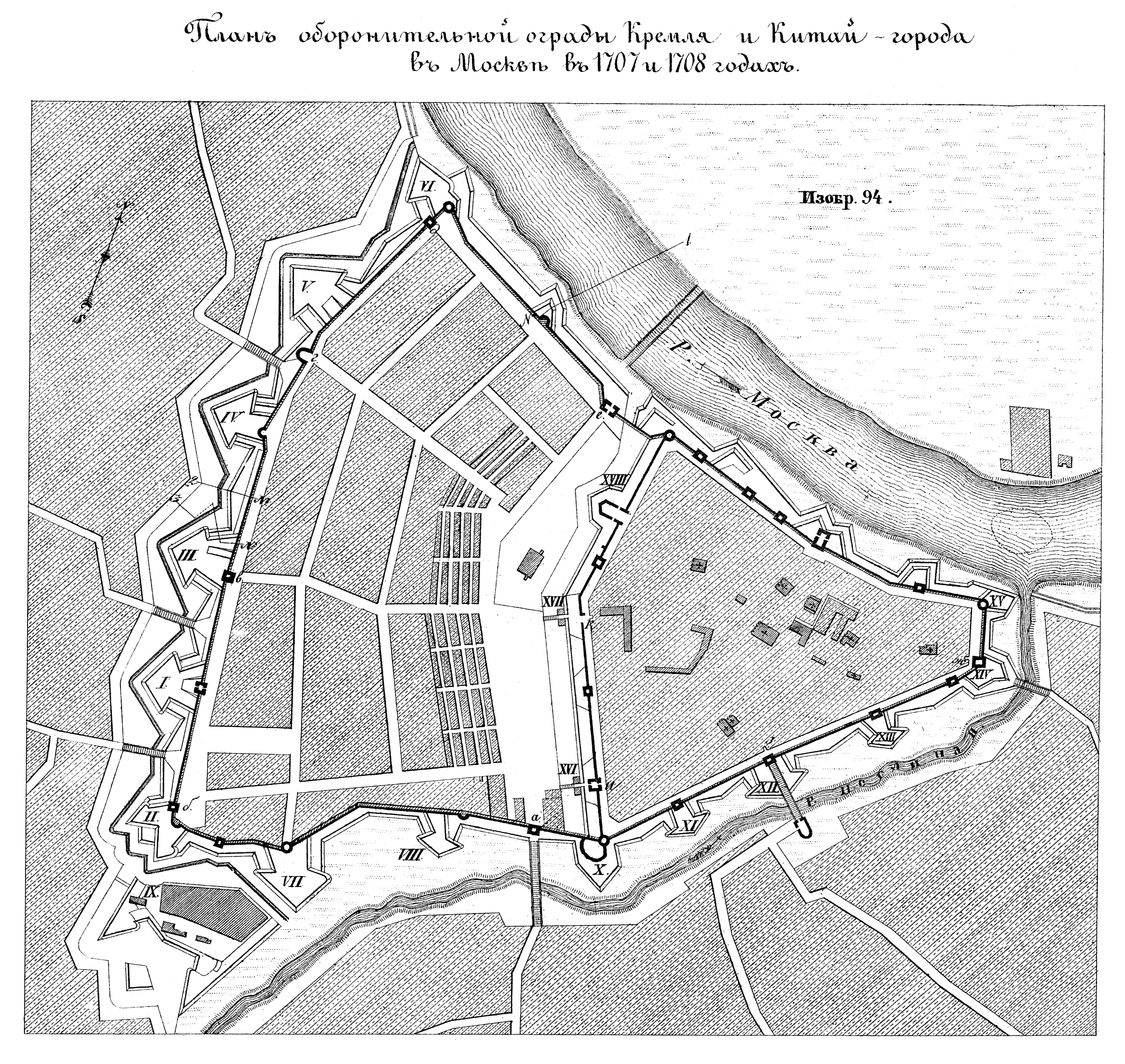 Оборонительная ограда Кремля и Китай-города в Москве в 1707 и 1708 годах