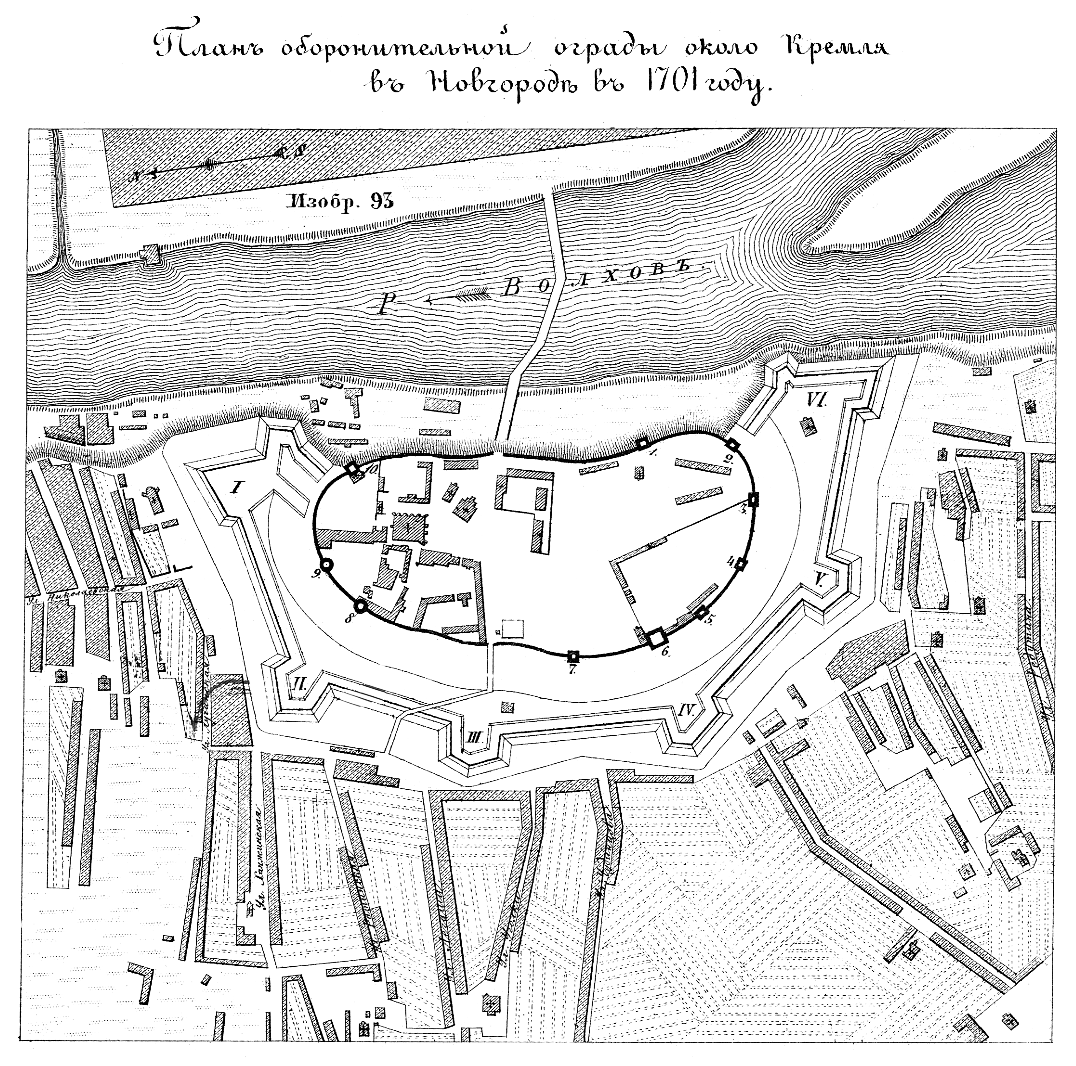 Оборонительная ограда около Кремля в Новгороде в 1701 году