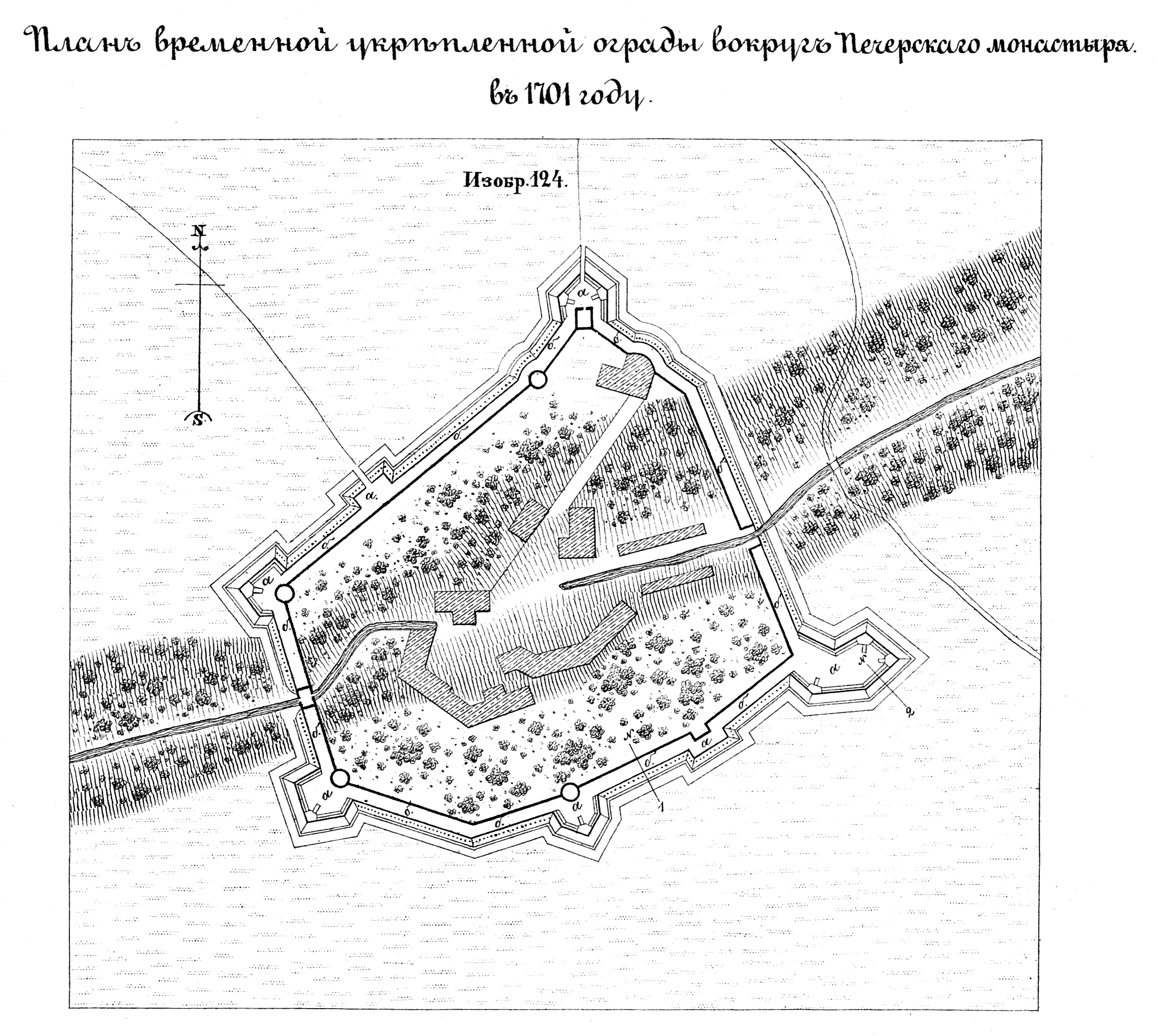 Временная укрепленная ограда вокруг Печерского монастыря в 1701 году