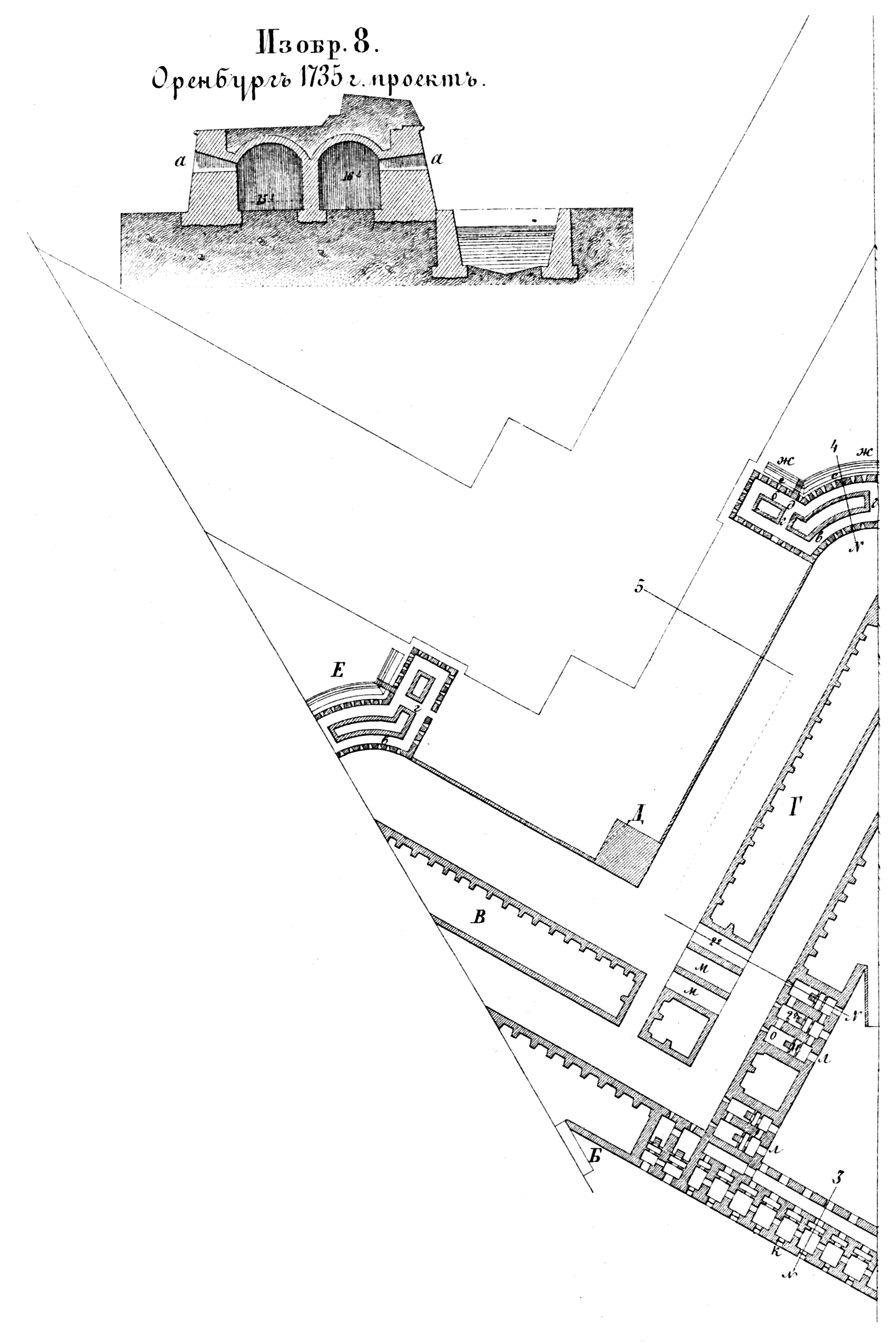 Способы укрепления. Изобр.8. Оренбург 1756 год (проект)