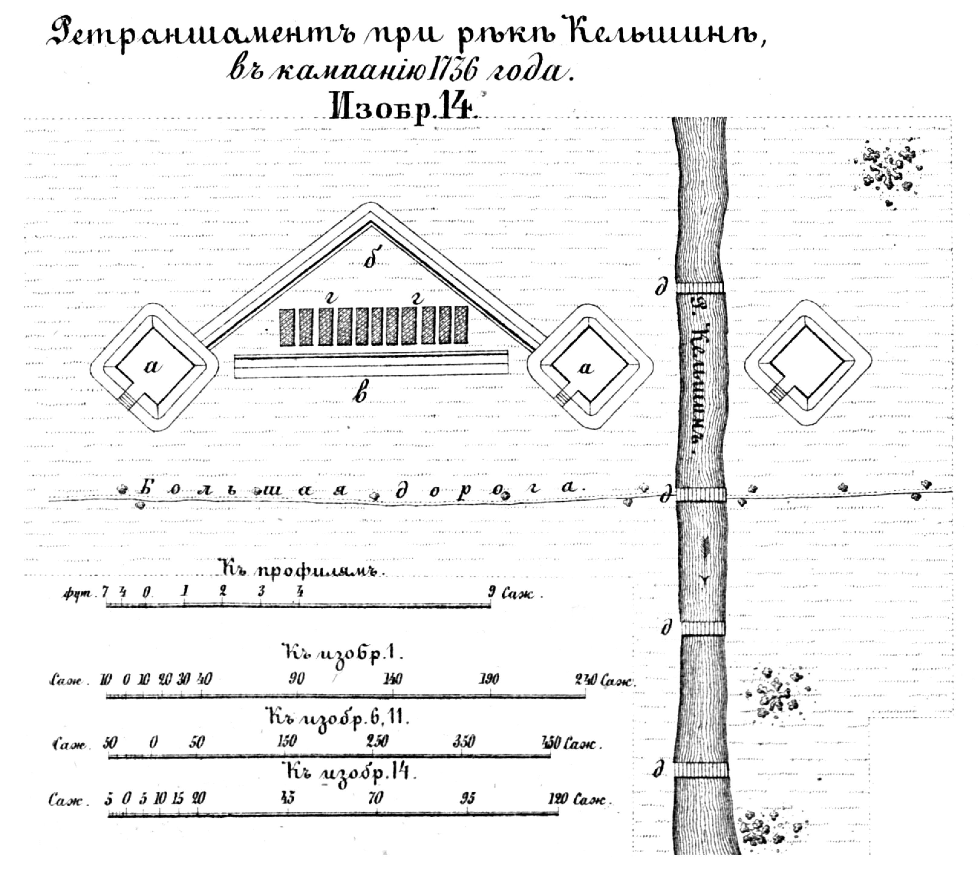 Полевые и временные укрепления. Изобр.14. Ретраншамент при реке Кельшин в кампанию 1736 года