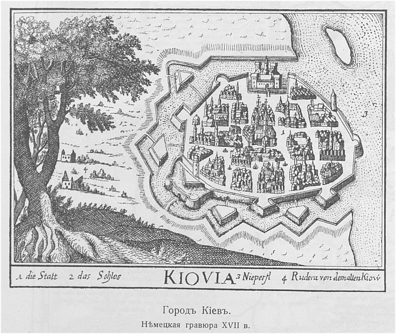 Город Киев. Немецкая гравюра XVII века