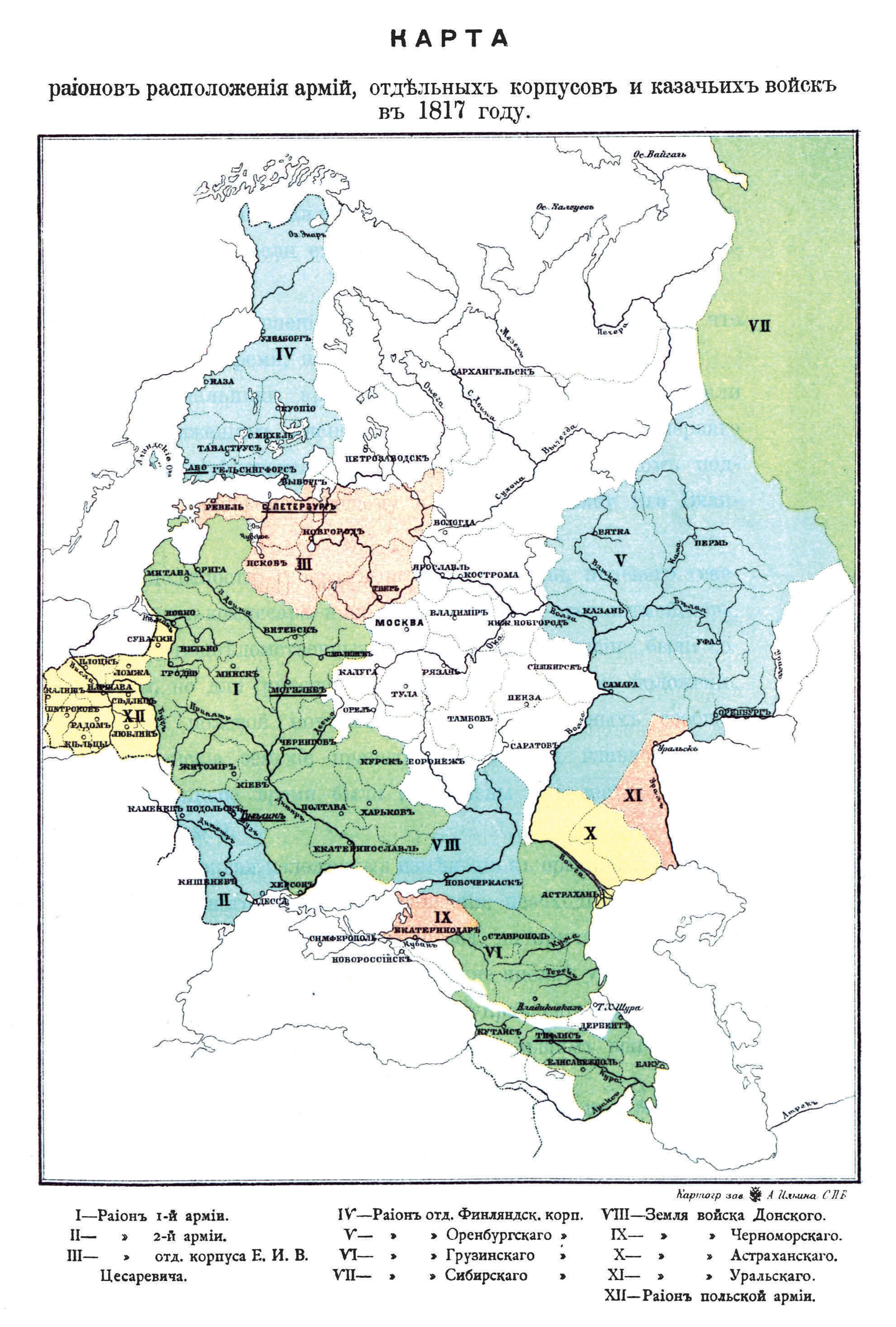 Районы расположения армий, отдельных корпусов и казачьих войск в 1817 году