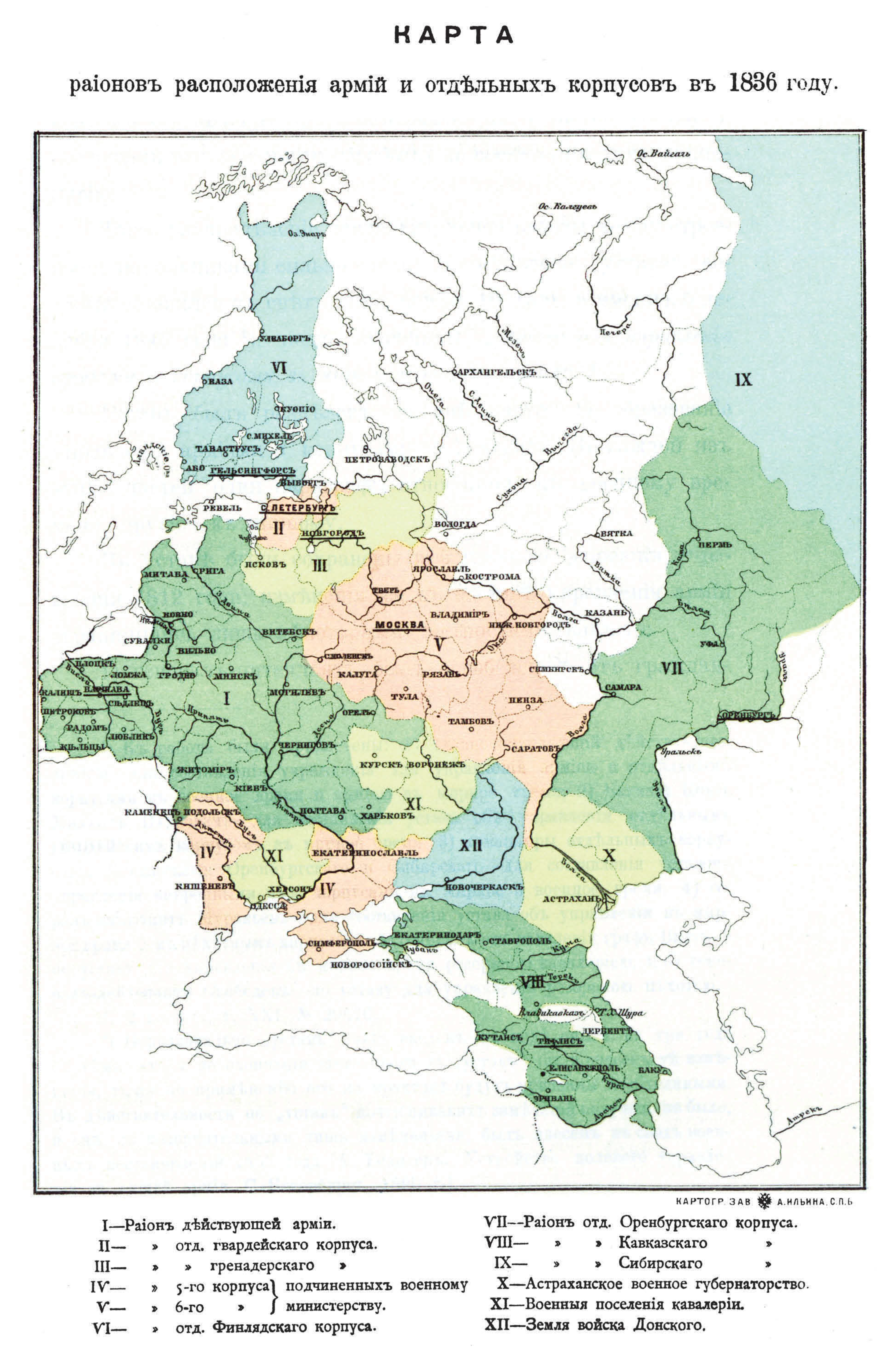 Районы расположения армий и отдельных корпусов в 1836 году