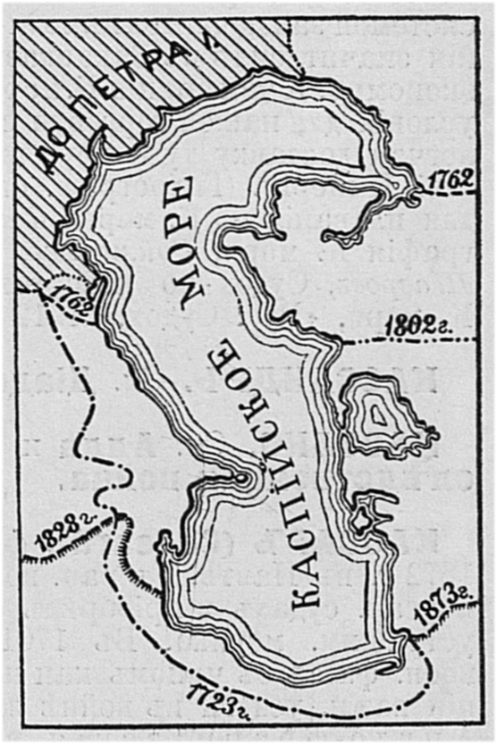 Границы российских владений по берегам Каспийского моря в различные периоды