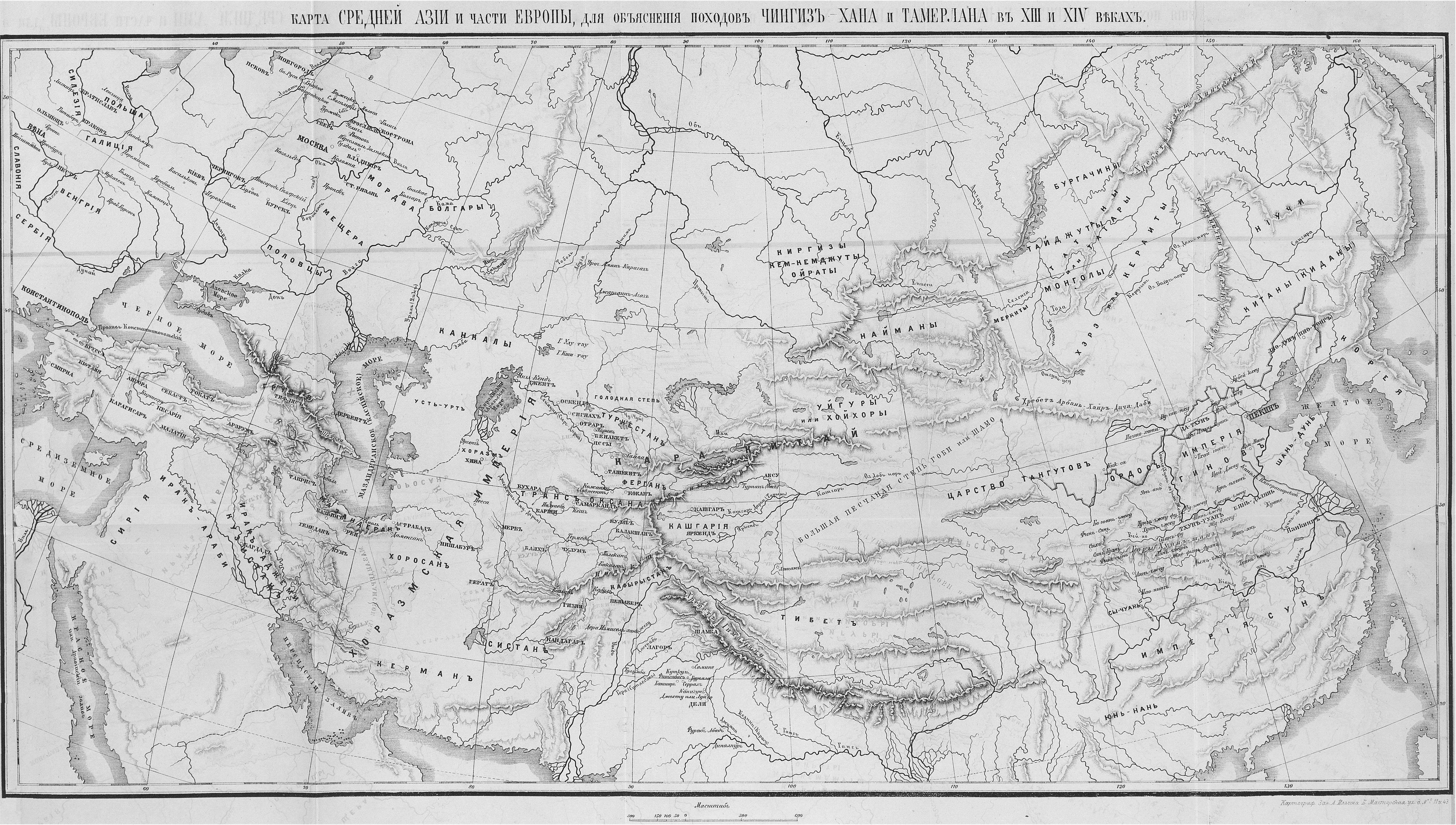 Средняя Азия и часть Европы, для объяснения походов Чингиз-Хана и Тамерлана в XIII и XIV веках
