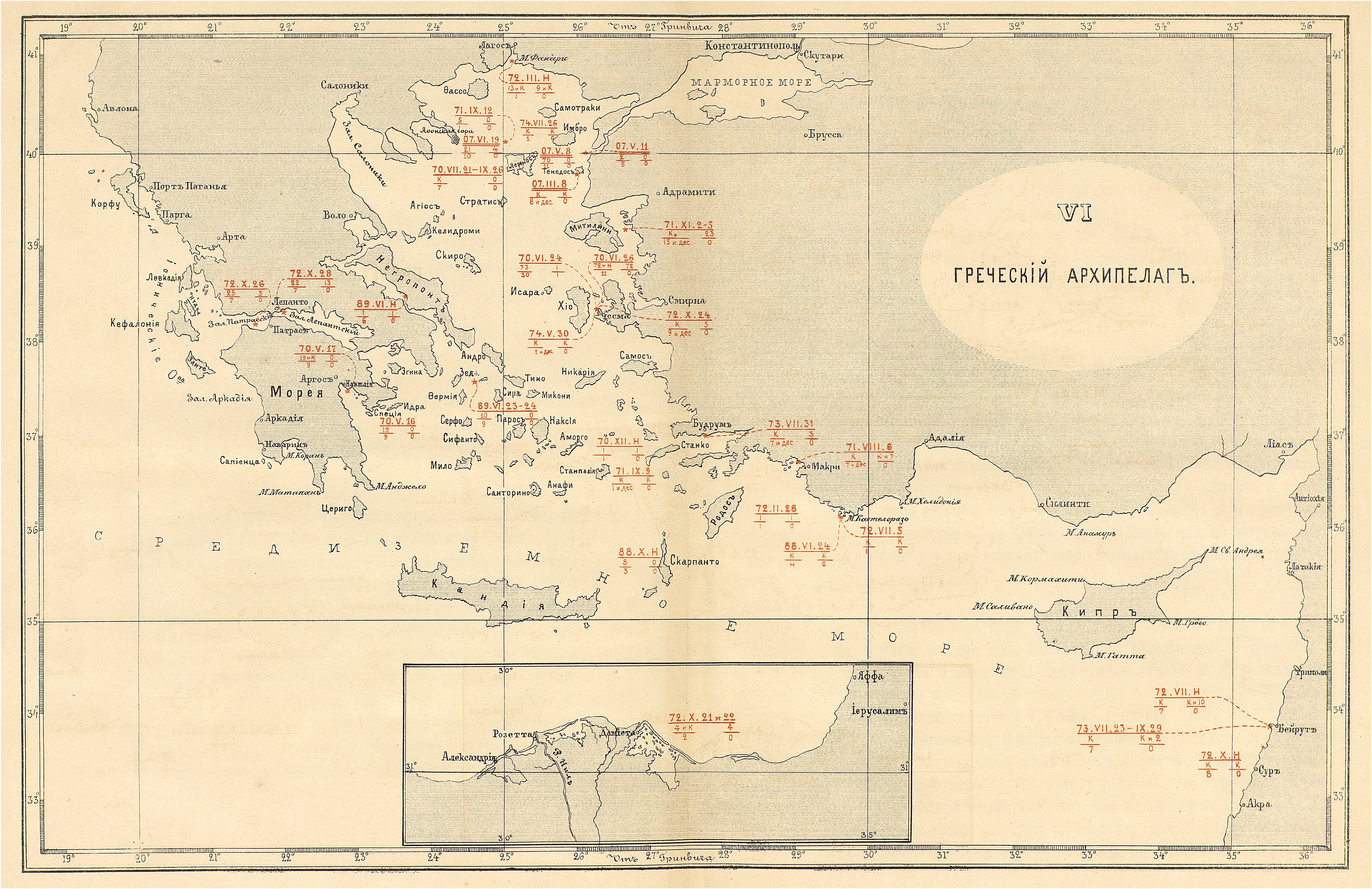Первый изданный в России полный справочник морских сражений с участием русских кораблей. Включает детальные карты с указанием всех мест боев и счетом потерь.