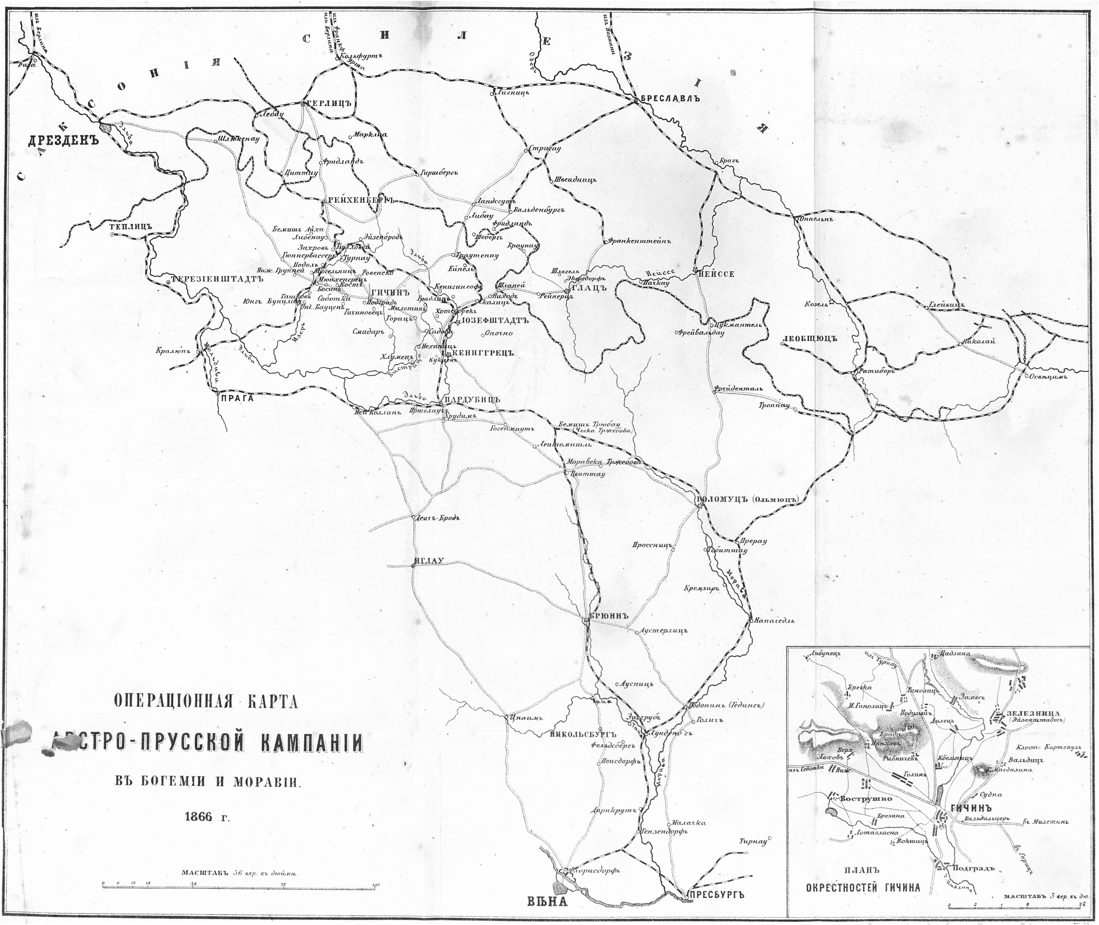 Операционная карта Австро-Прусской кампании в Богемии и Моравии в 1866 году