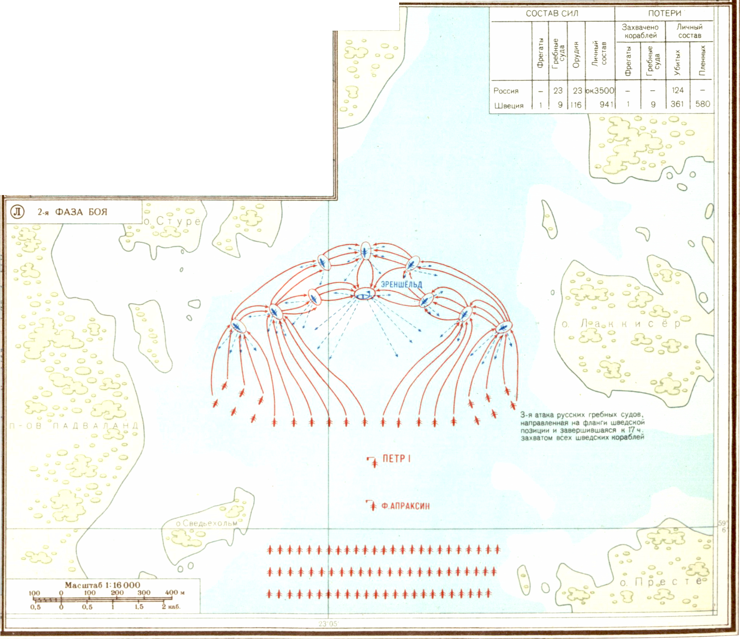 Совместные действия русской армии и флота на побережье Финляндии в 1712-1714 гг. Гангутское сражение. (Л) Бой 27 июля. 2-ая фаза.
