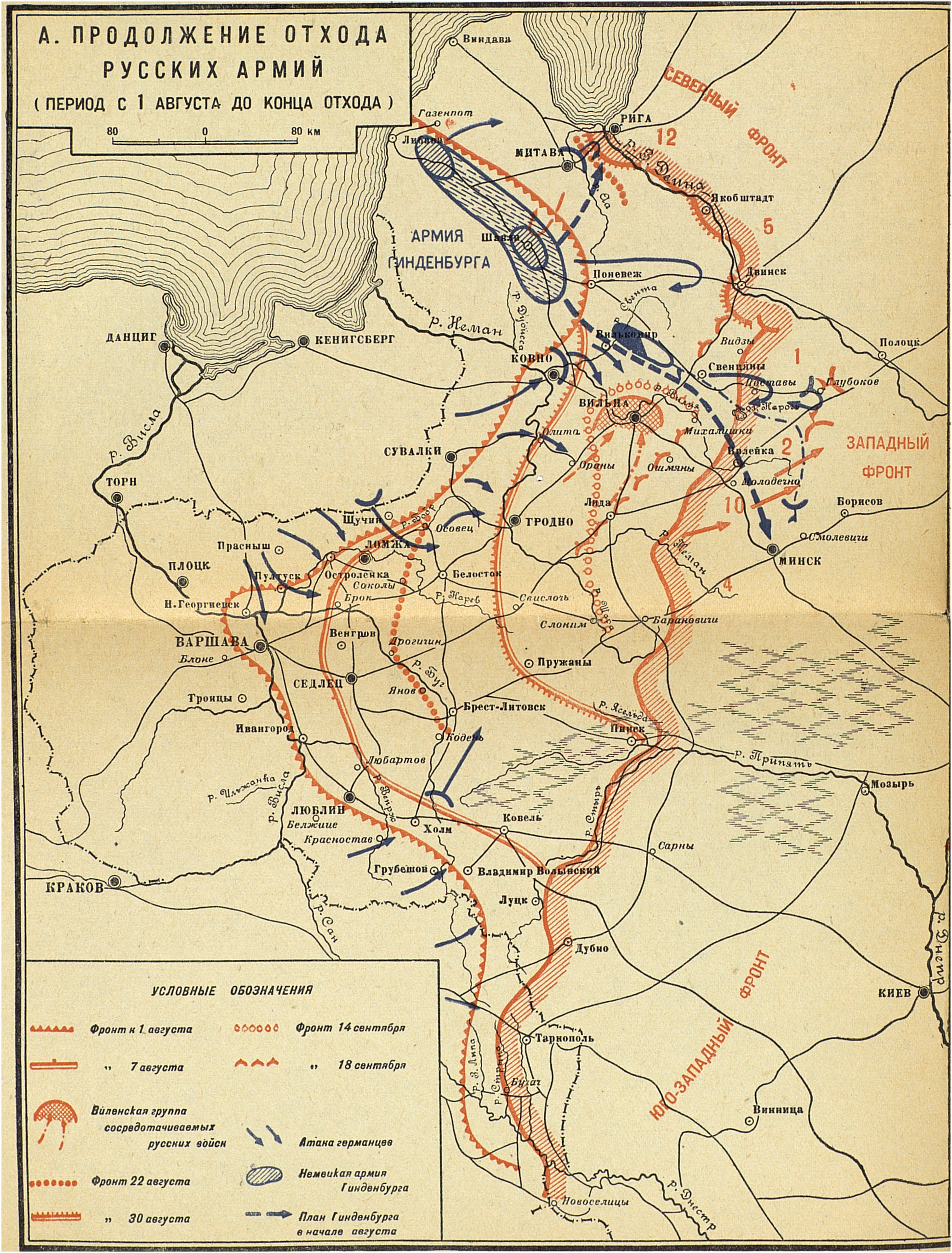 Кампания 1915 года. Русский театр. Отход русских армий. А. Продолжение отхода русских армий (период с 1 августа до конца отхода)