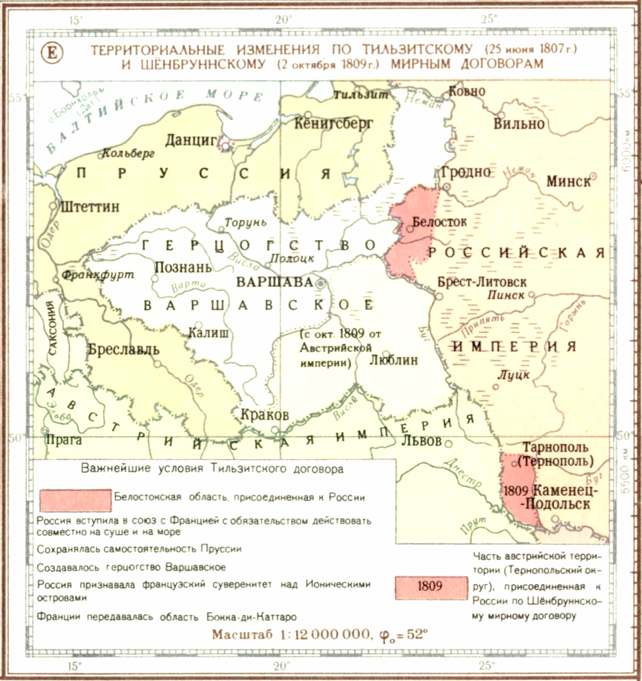 Войны России в составе Третьей и Четвертой коалиций против Франции в 1805-1807 гг. Русско-турецкая война 1806-1812 гг. (кампания 1806-1807гг). (Е) Территориальные изменения по Тильзитскому (25 июня 1807 г.) и Шенбруннскому (2 октября 1809 г.) мирным догов