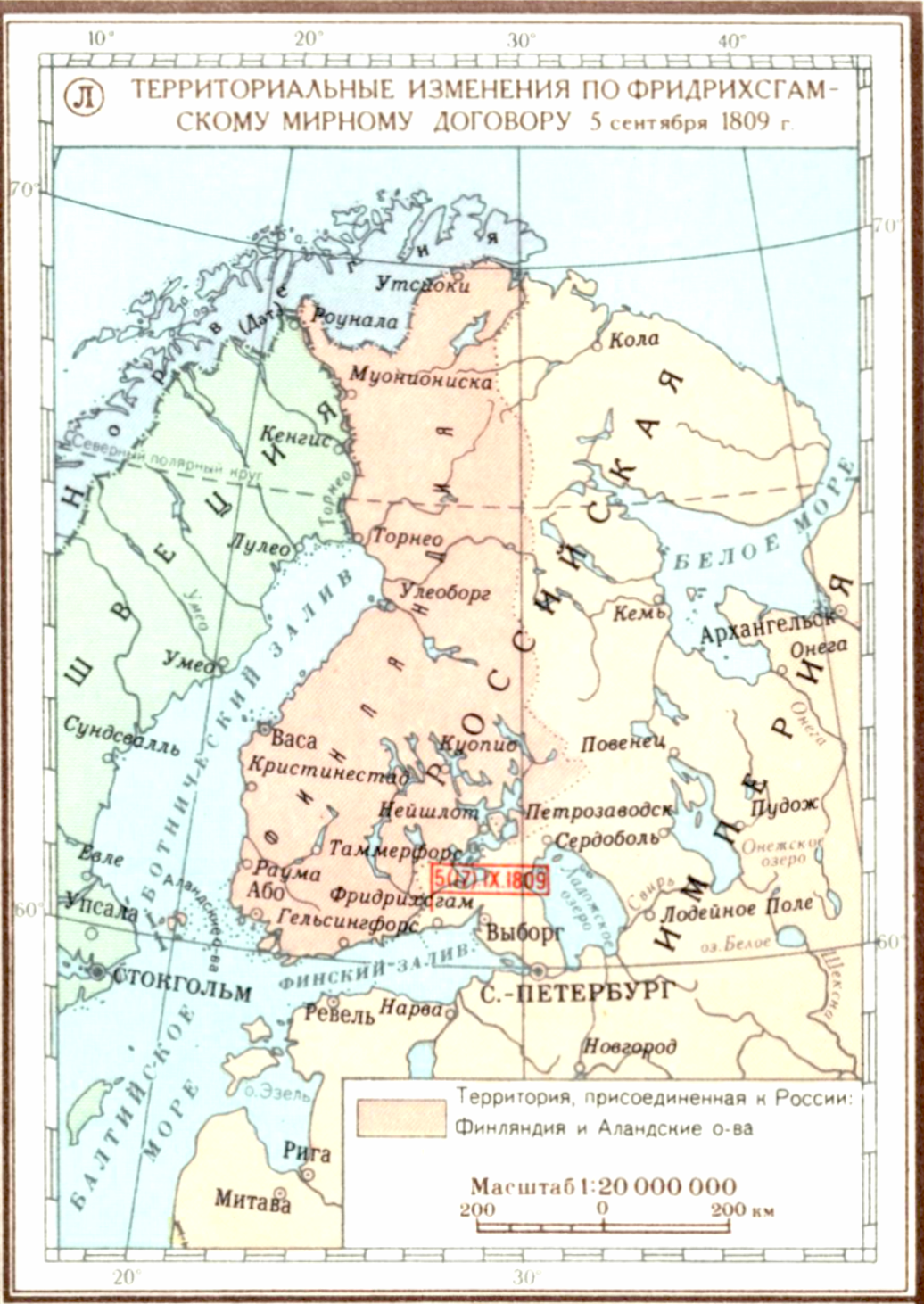 Русско-шведская война 1808-1809 гг. Англо-русская война 1807-1812 гг. (Действия на Балтийском море в 1808-1809гг). (Л) Территориальные изменения по Фридрихсгамскому мирному договору 5 сентября 1809 г.