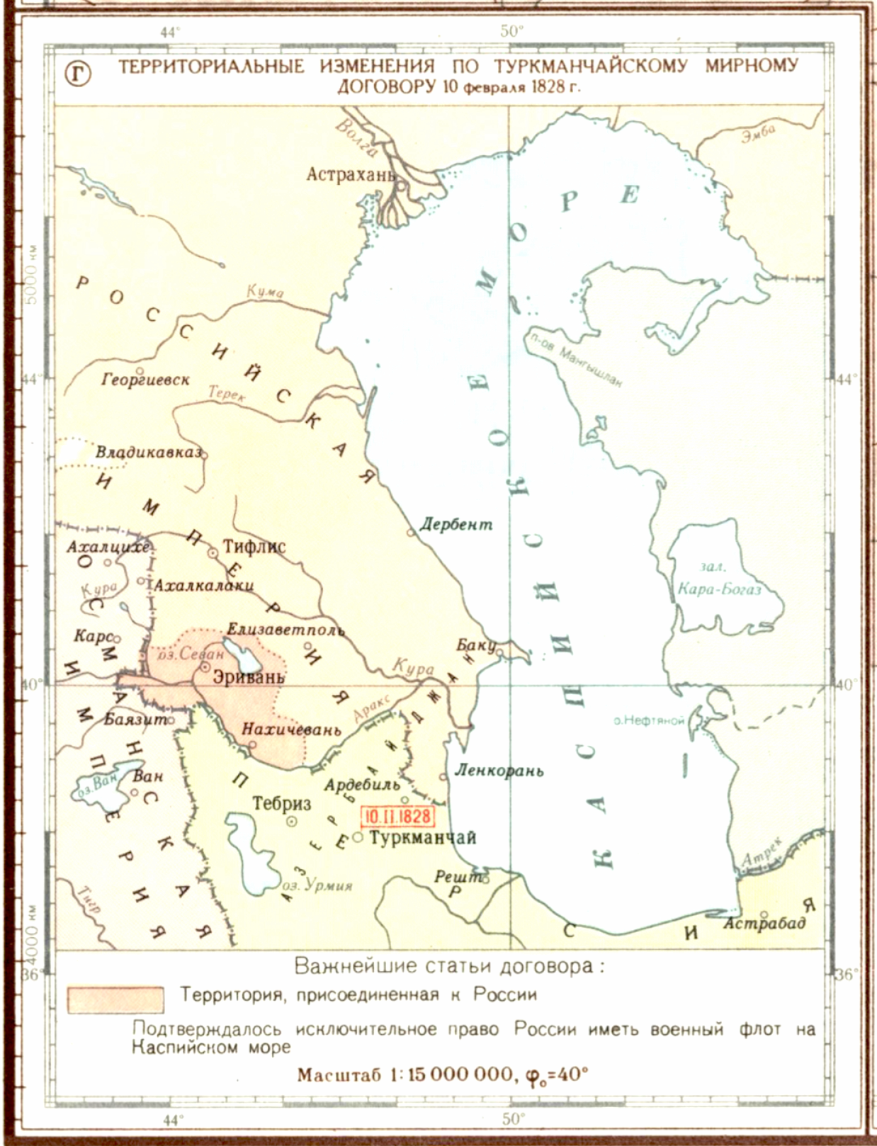 Русско-персидская война 1826-1828 гг. (Г) Территориальные изменения по Туркманчайскому мирному договору 10 февраля 1828 г.