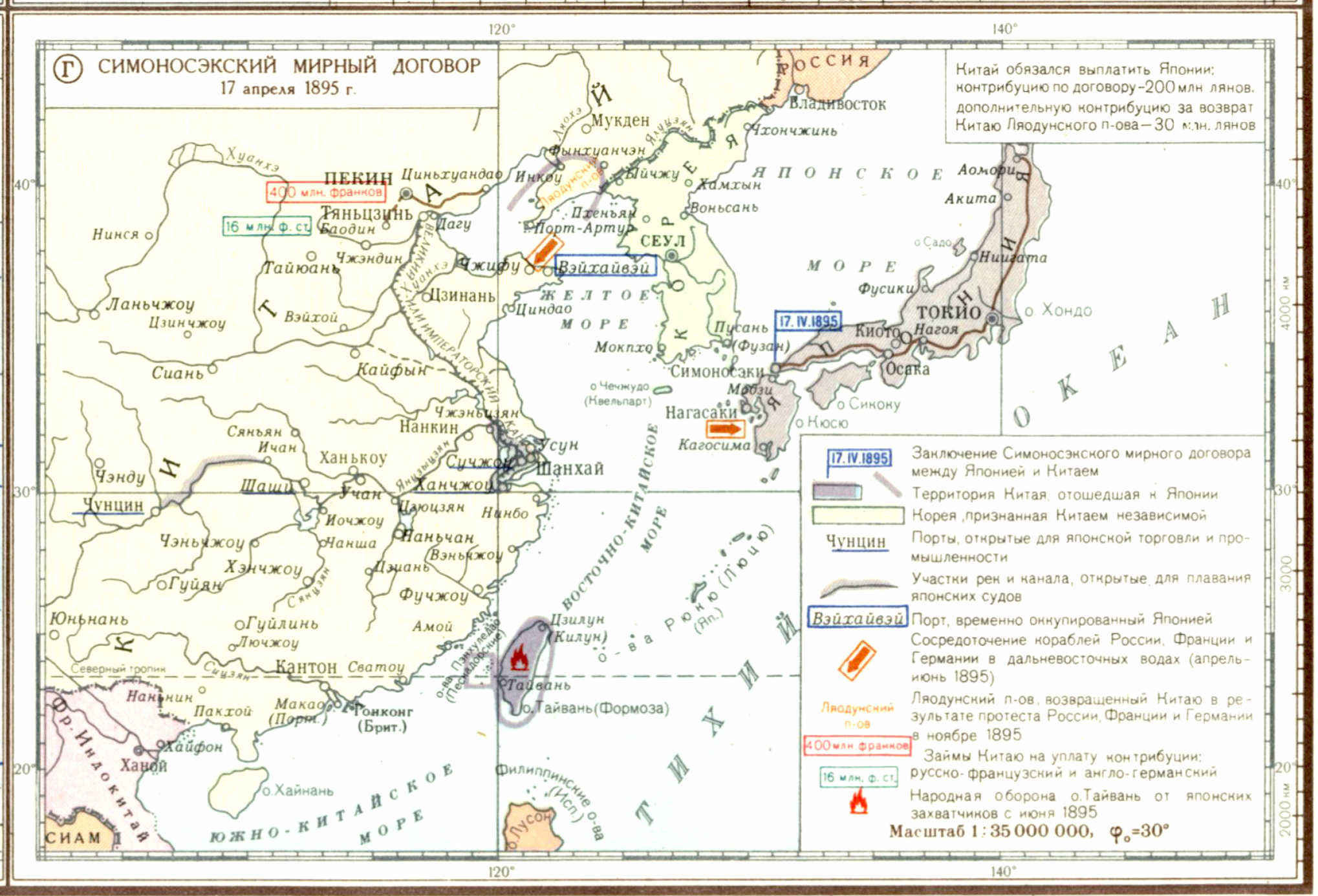 Японо-китайская война 1894-1895 гг. (Г) Симоносэкский мирный договор 17 апреля 1895 г.