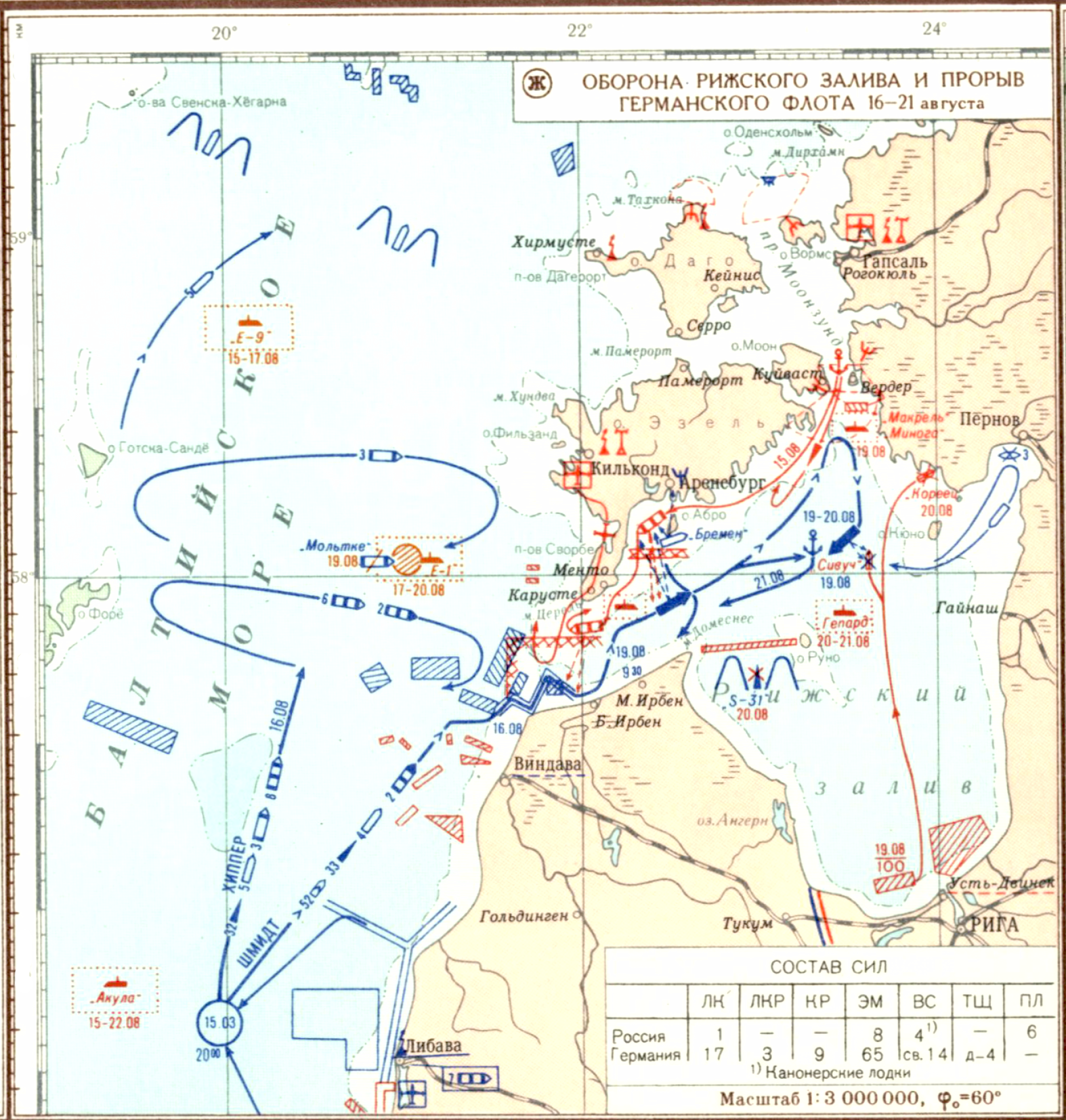 Первая мировая империалистическая война 1914-1918 гг. Кампания 1915 года. (Ж) Оборона Рижского залива и прорыв Германского флота 16-21 августа
