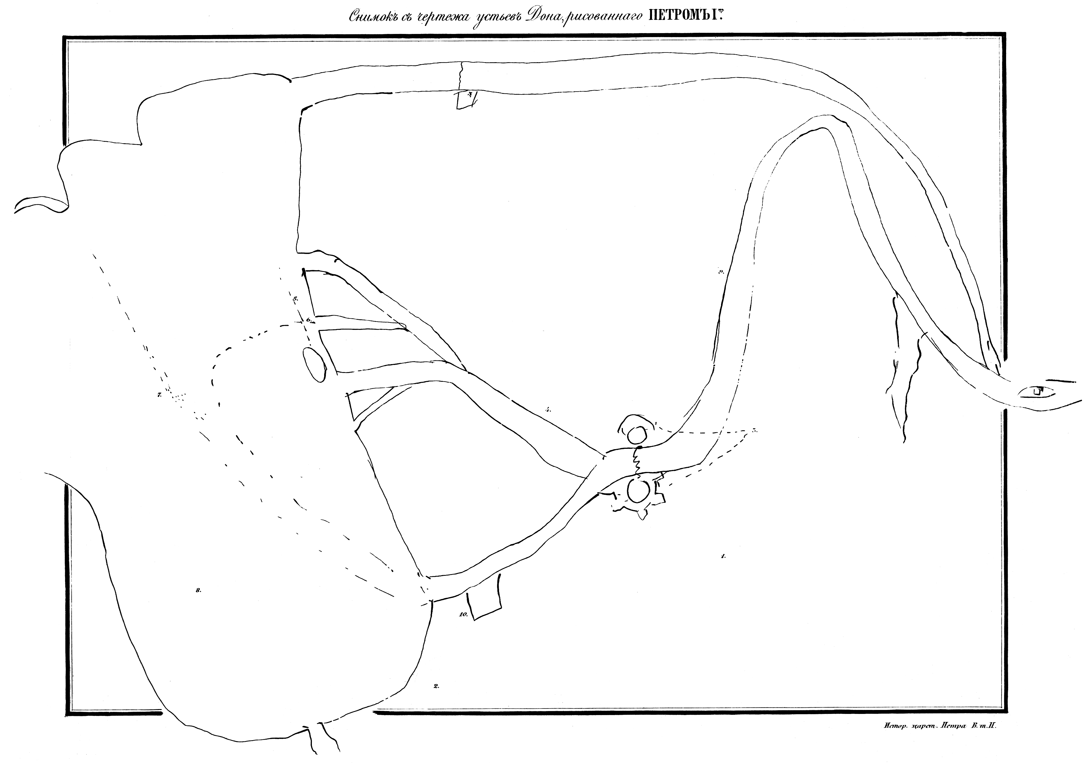 Чертеж устьев Дона, рисованный Петром I.