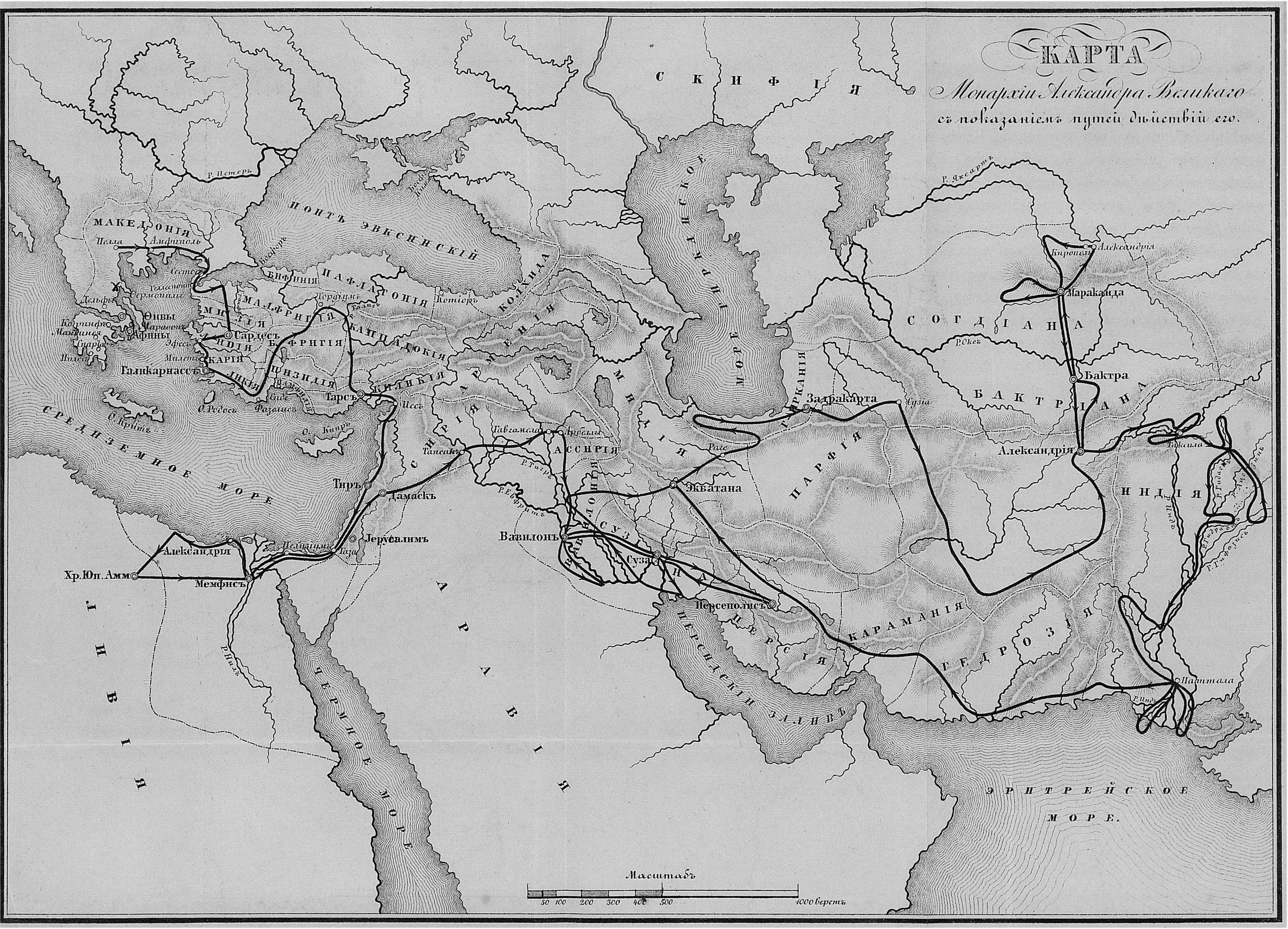 Монархия Александра Великого с показанием путей его действий