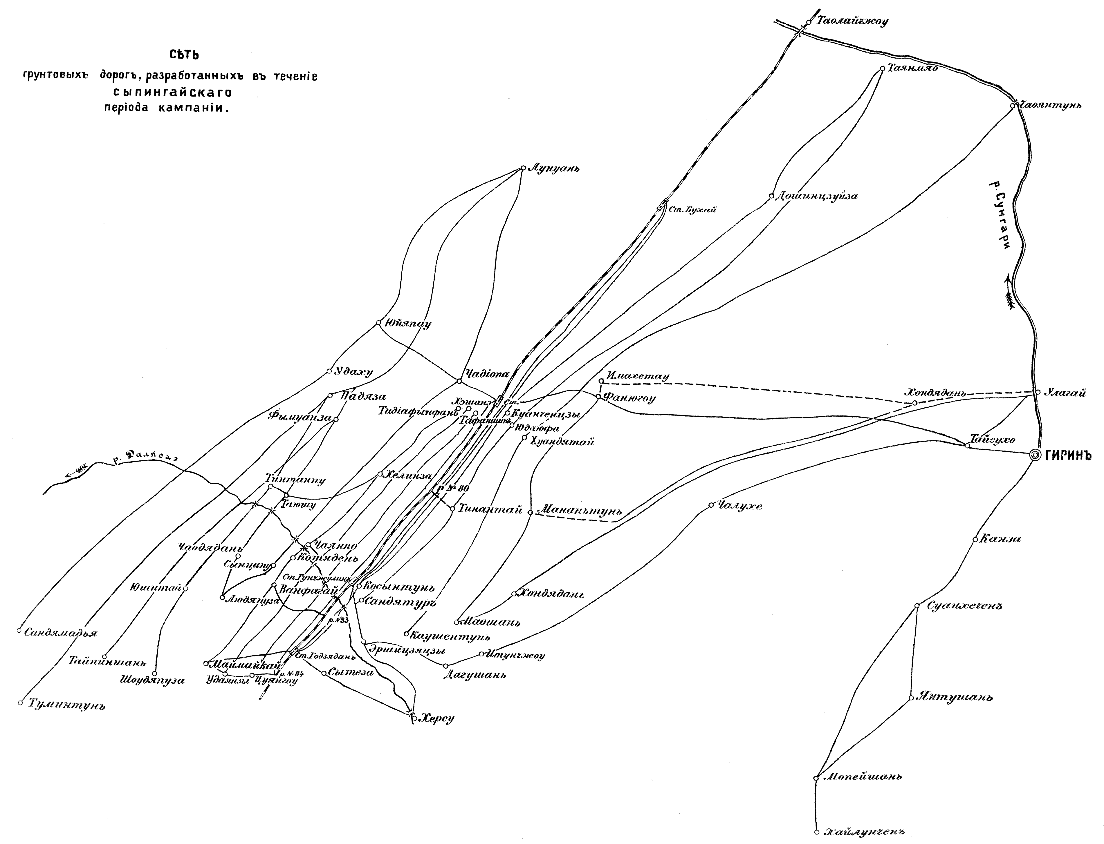 Сеть грунтовых дорог, разработанных в течение Сыпингайского периода кампании