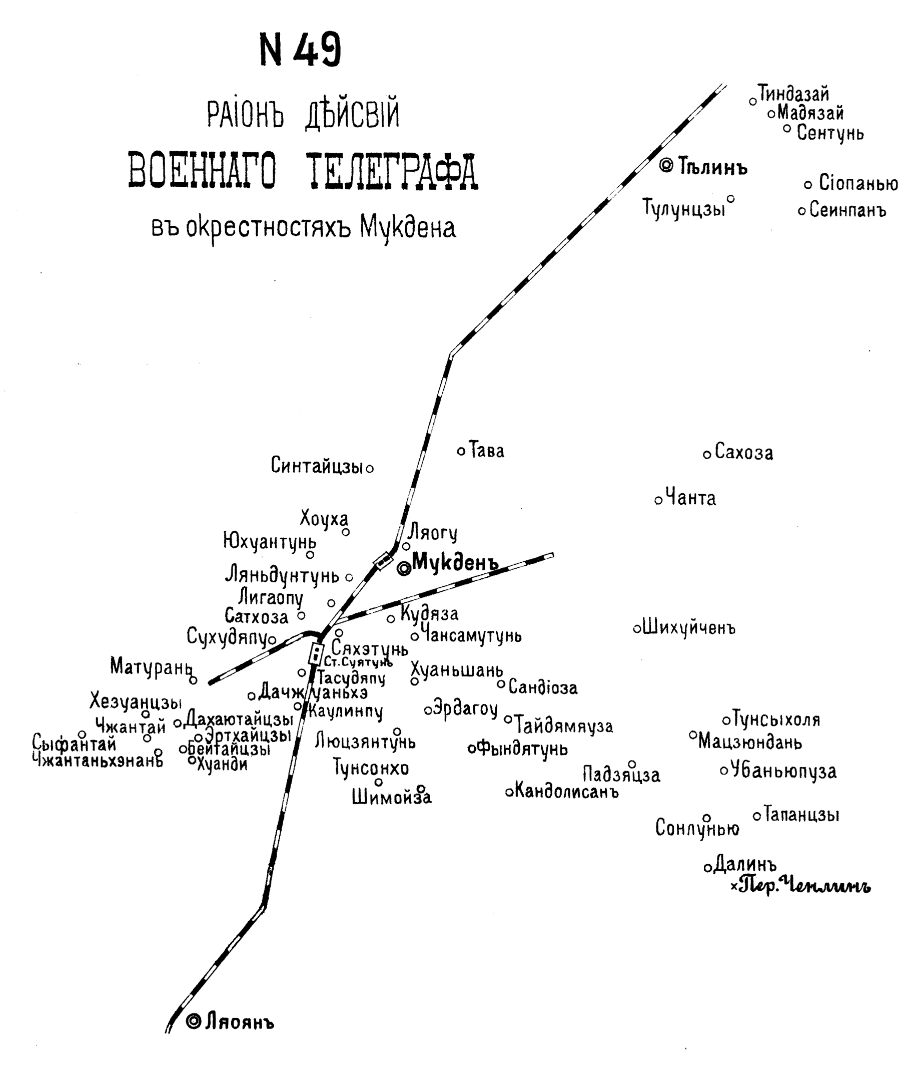 Район действий военного телеграфа в окрестностях Мукдена