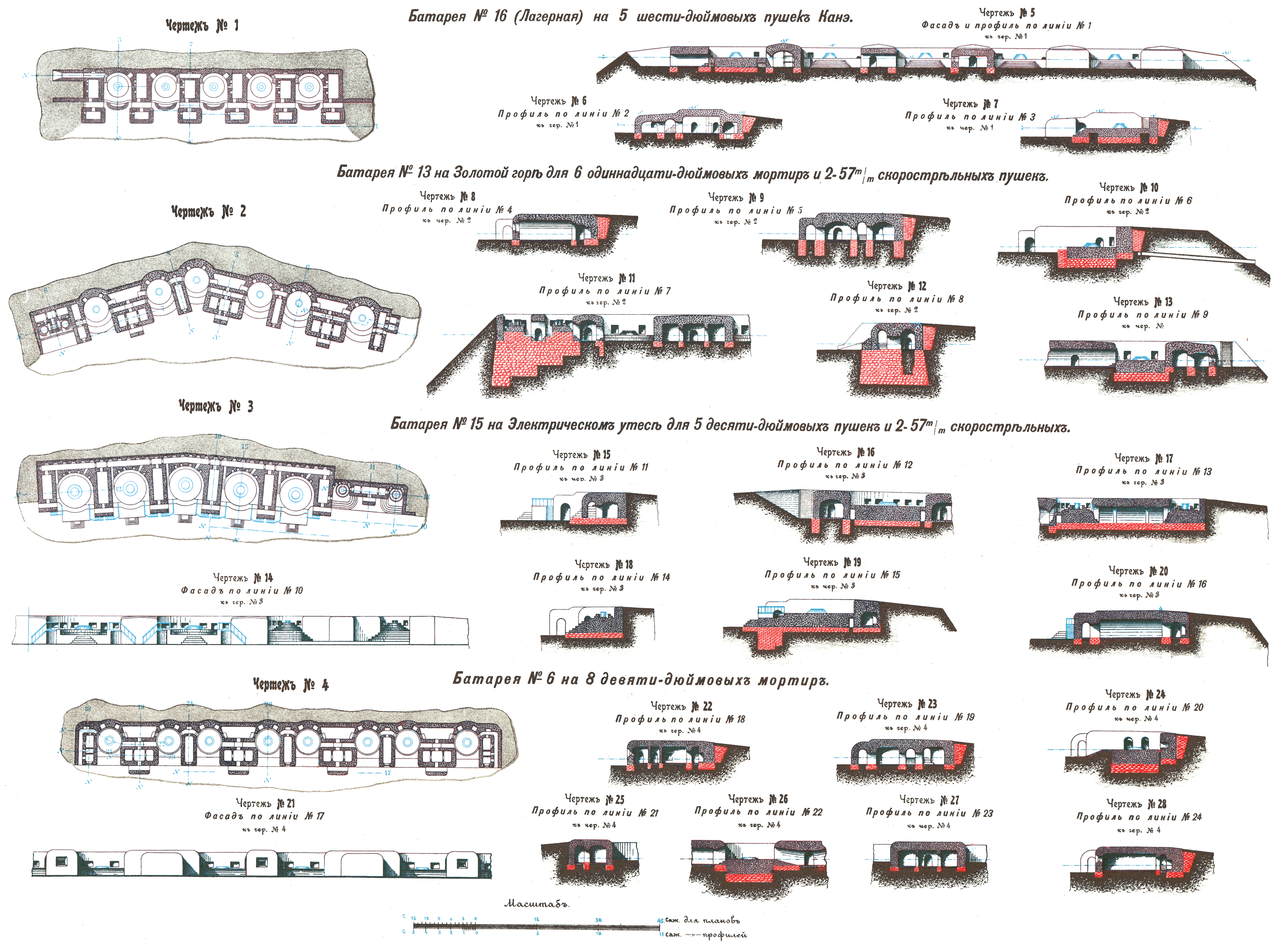 Чертежи береговых батарей №№ 16, 13, 15 и 6