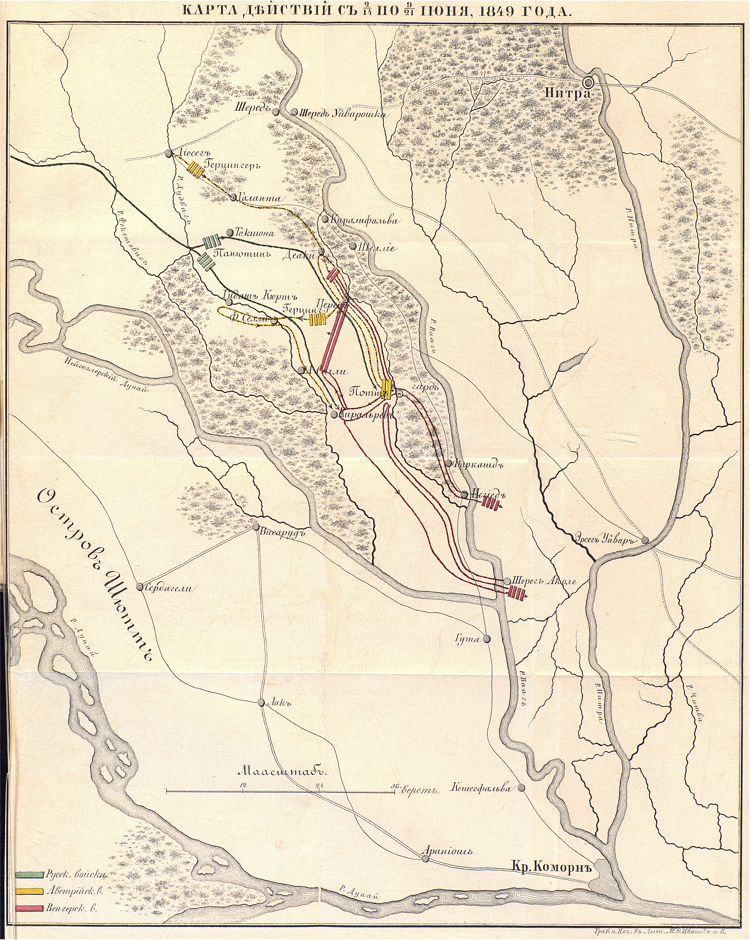 Мятежники заняли Перед. Фельдмаршал-лейтенант Вольгемут, не имея свежих войск, для поддержания отступавших бригад, тем более что, в тоже время, необходимо было удерживать переправу чрез Ваагу у Фрейштадта до последней крайности, предложить Русской дивизии принять участие в деле. Генерал-лейтенант Панютин изъявил готовность двинуть всю свою дивизию против неприятеля…