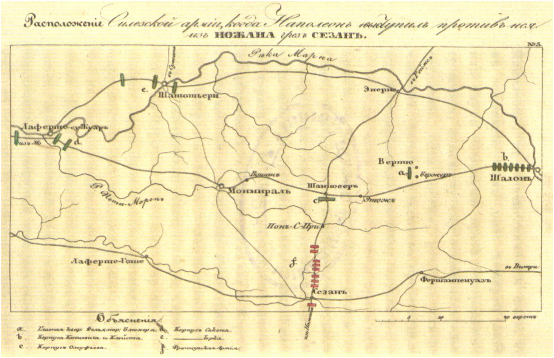 Расположение Силезской армии, когда Наполеон выступил против нее из Ножана через Сезан