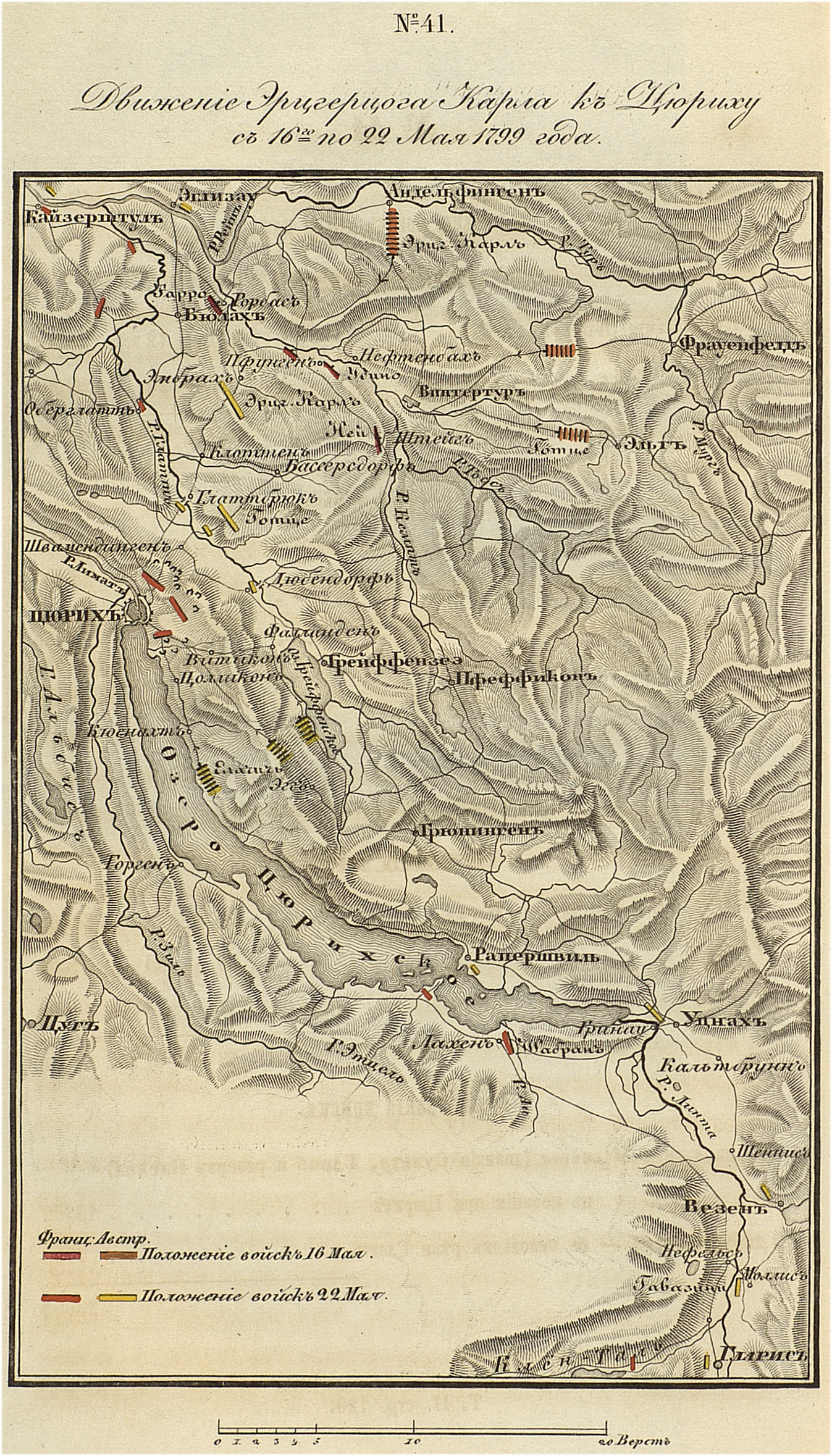 Движение Эрцгерцога Карла к Цюриху с 16-го по 22 мая 1799 года.