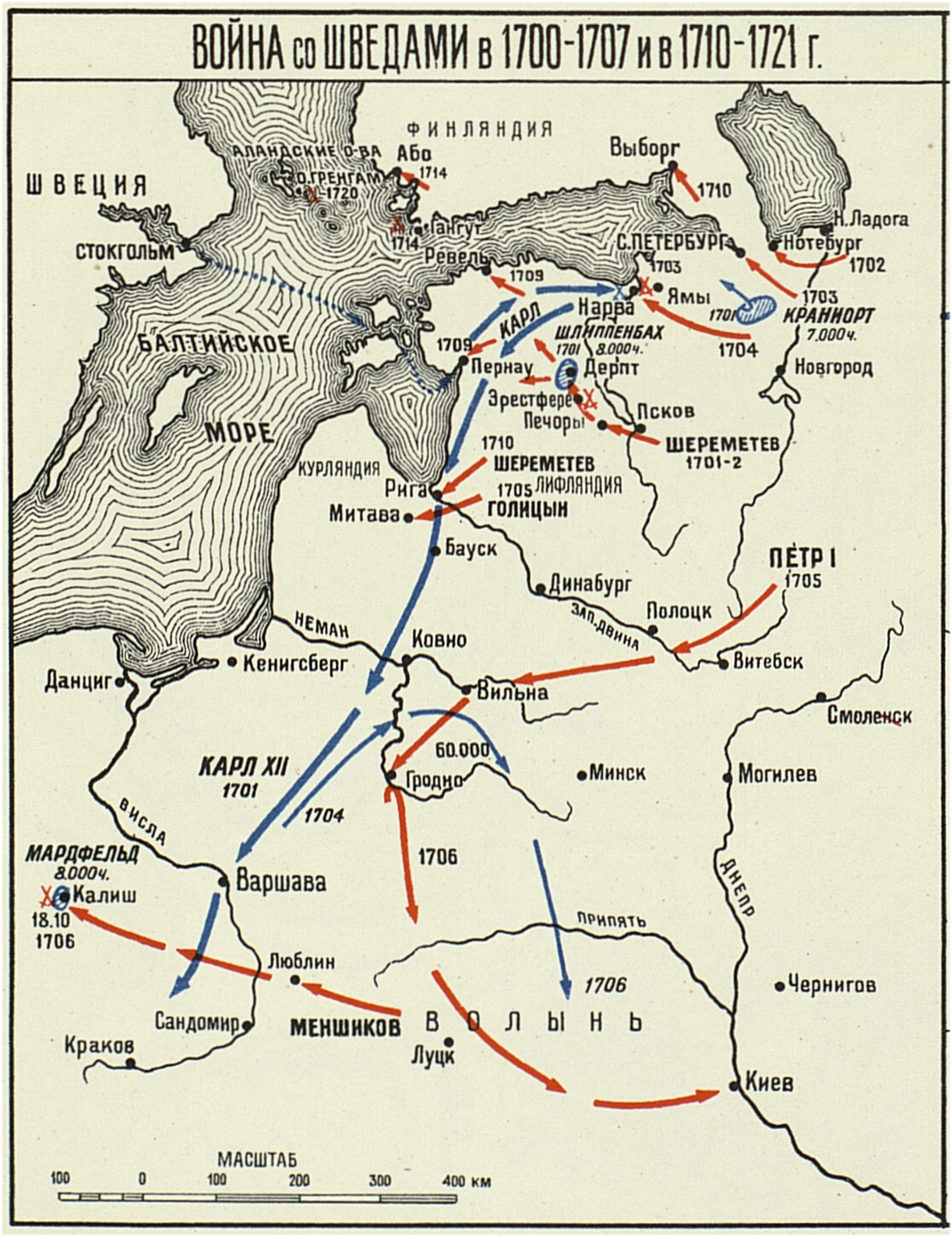 Война со шведами в 1700-1707 и в 1710-1721 гг