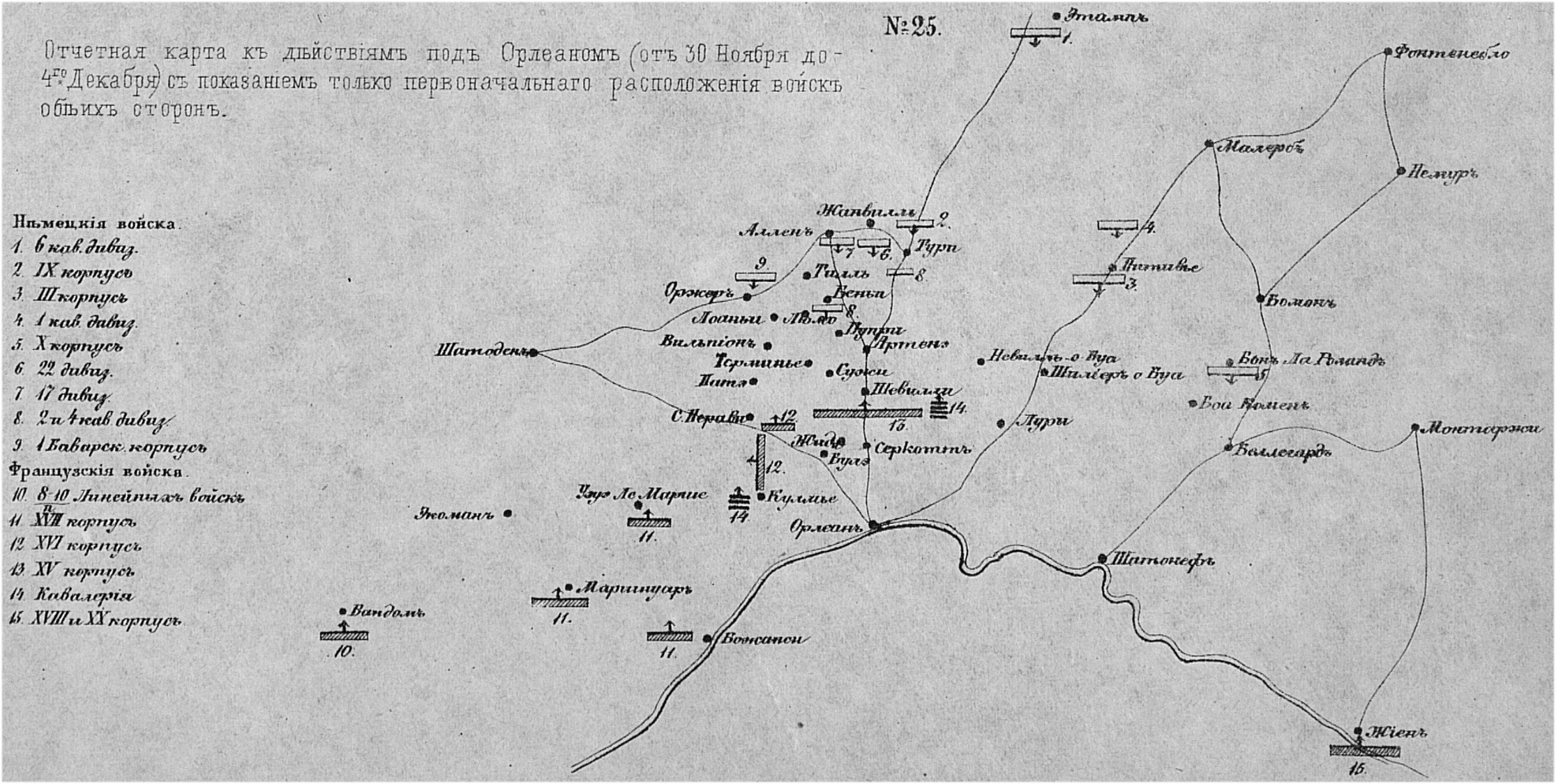 Действия под Орлеаном (от 30 ноября до 4 декабря) с показанием только первоначального расположения войск обеих сторон