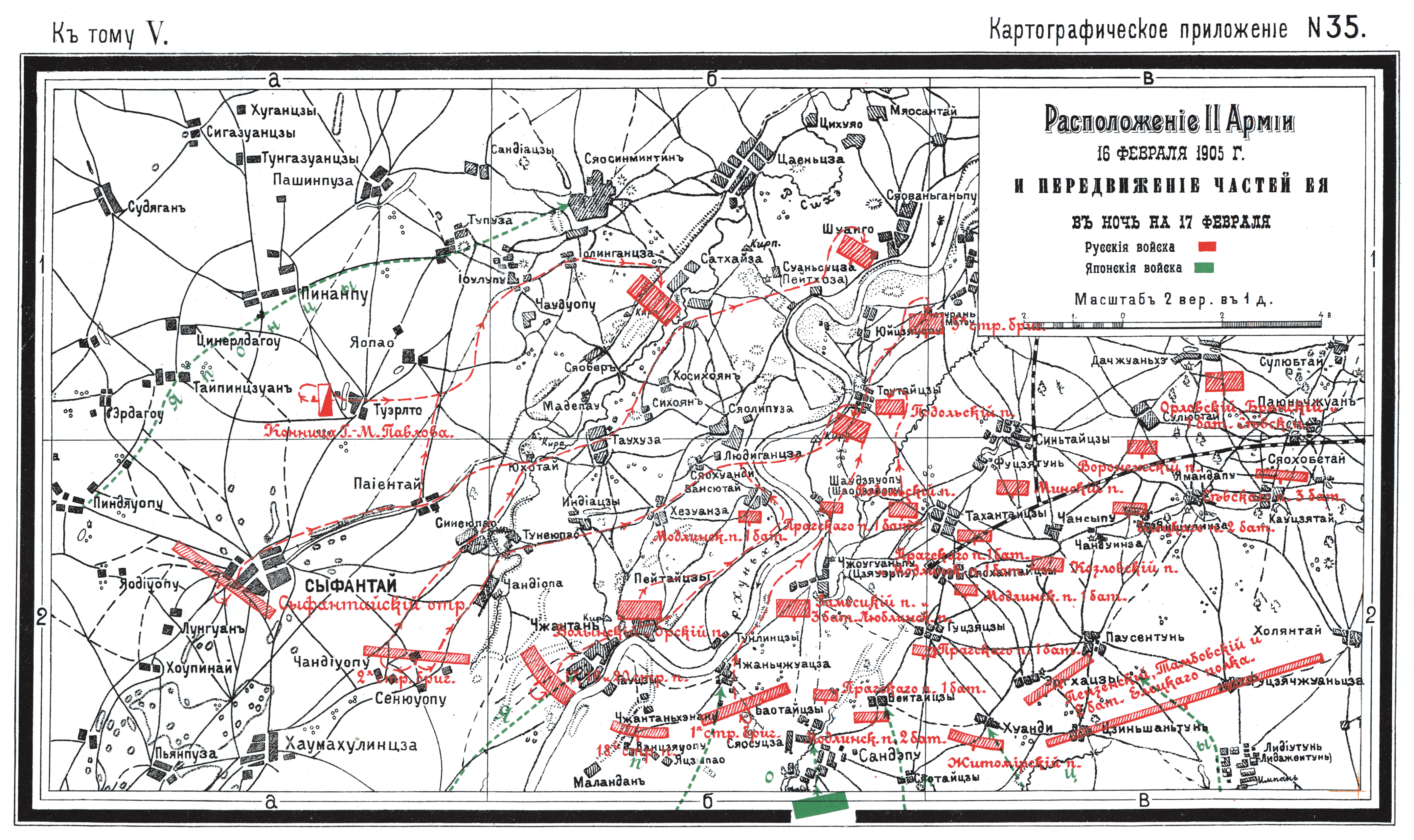 Расположение II Армии 16 февраля 1905 года и передвижение частей ее в ночь на 17 февраля