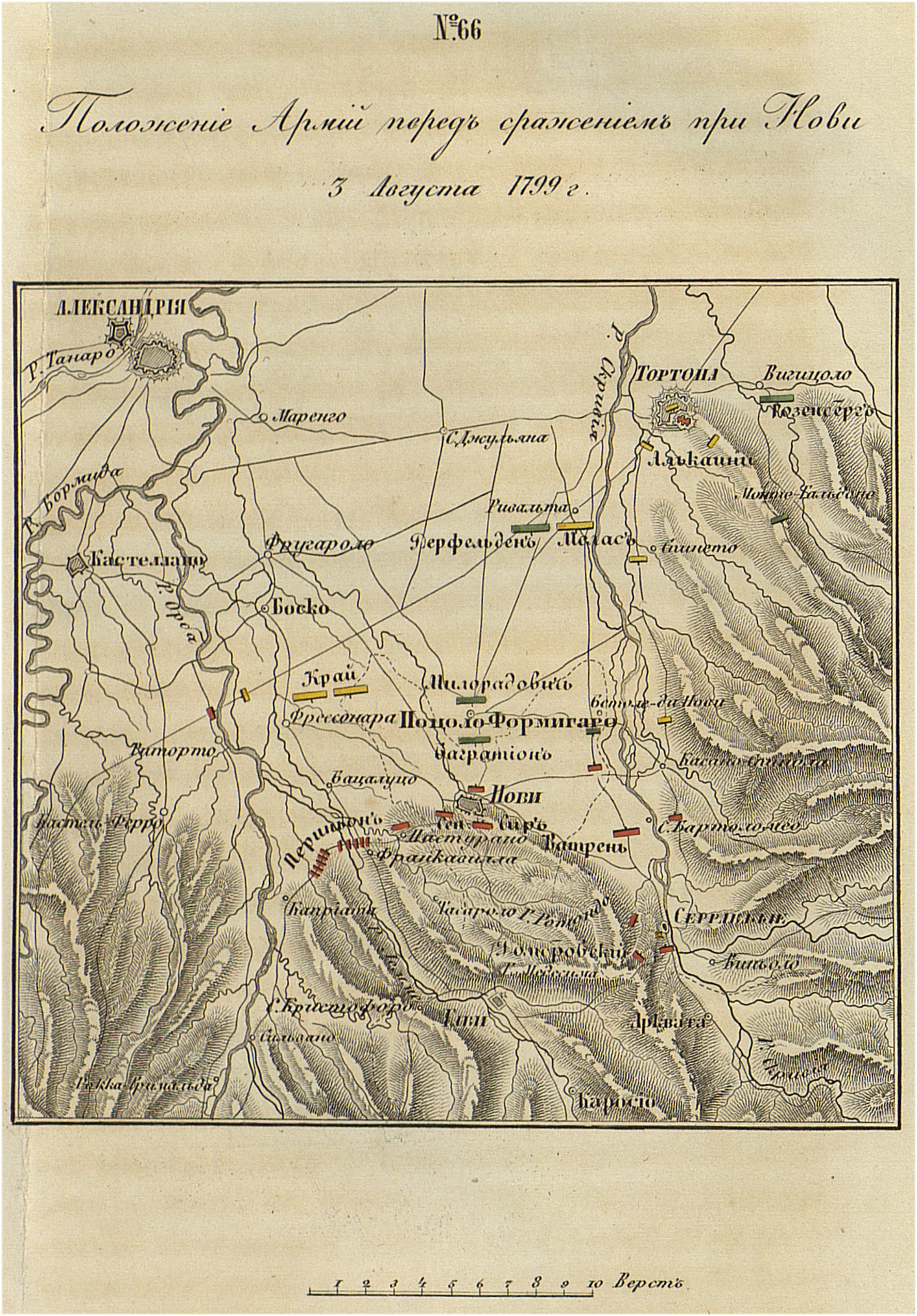 Положение армий перед сражением при Нови, 3 августа 1799г.