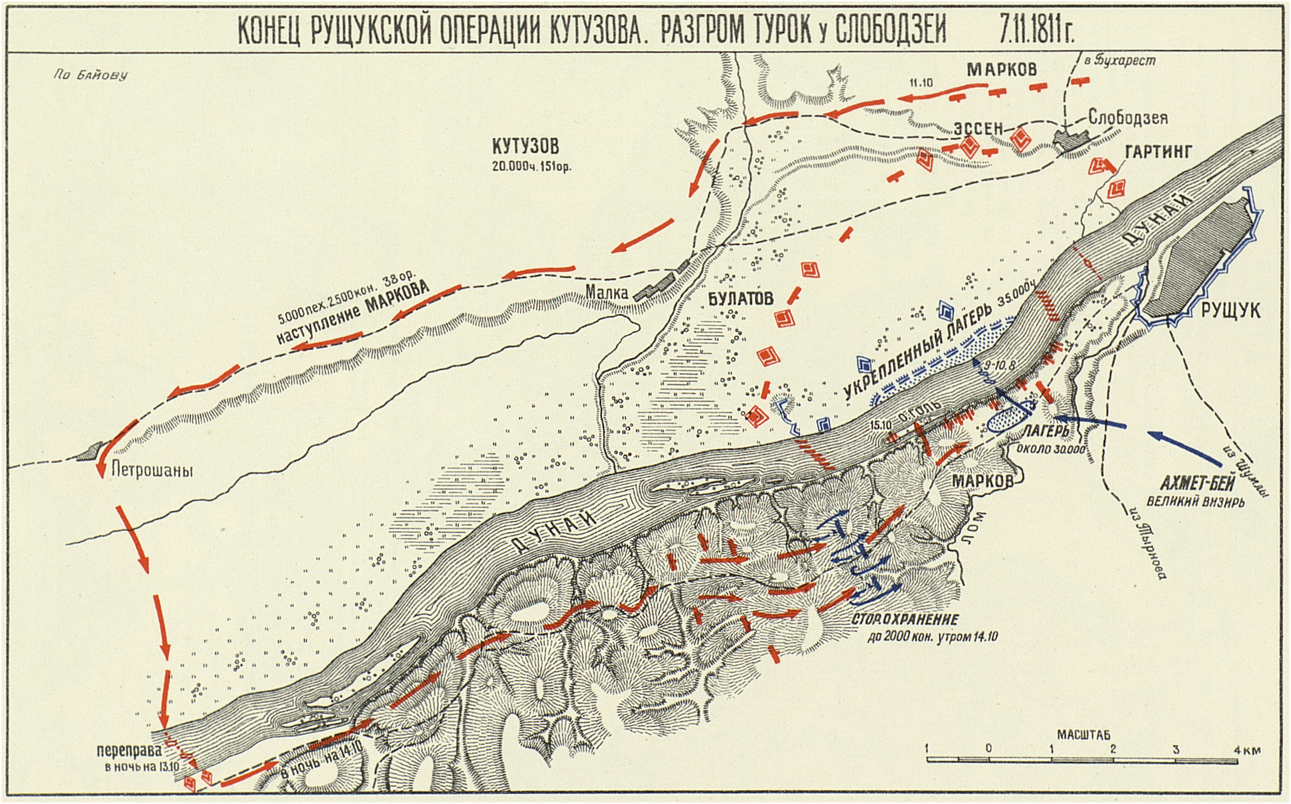 Конец Рущукской операции Кутузова. Разгром турок у Слободзеи 7.11.1811 г