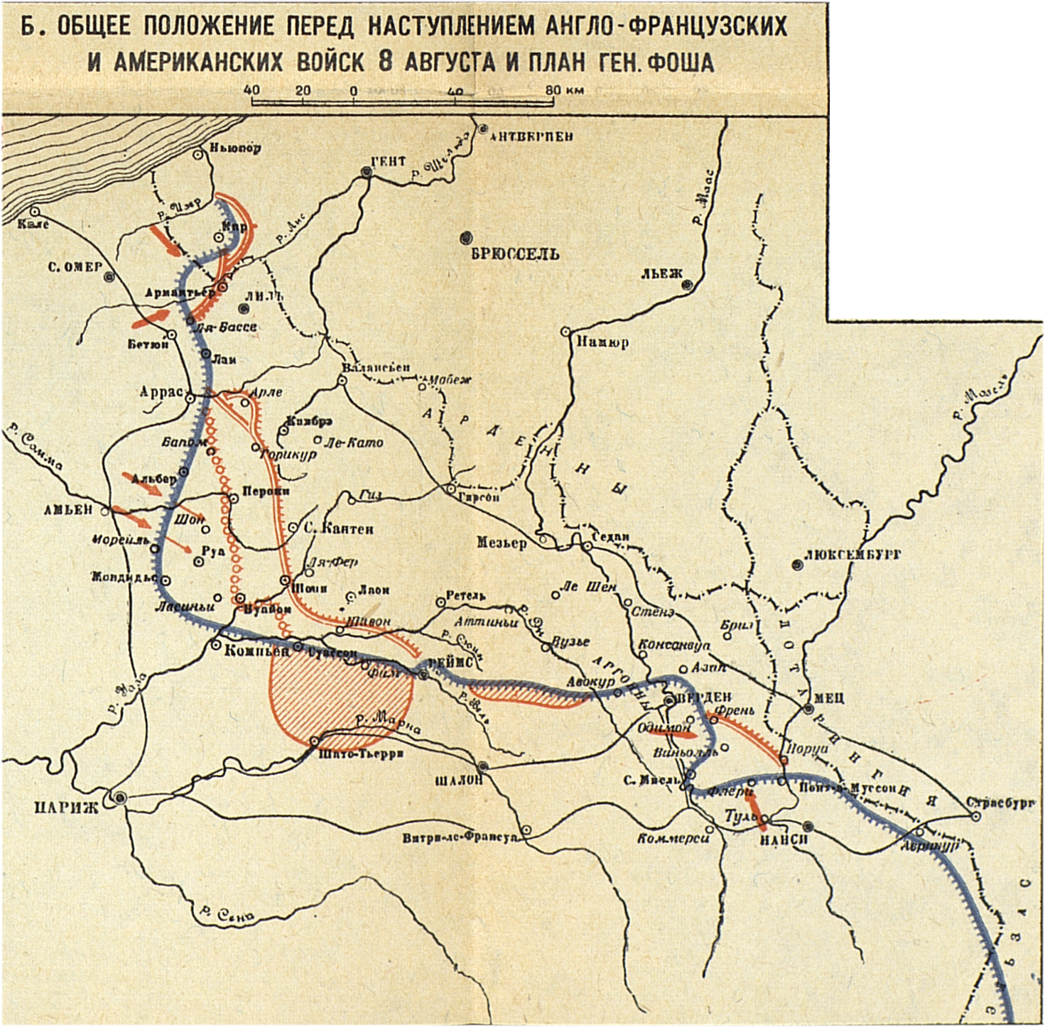 Кампания 1918 года. Французский театр. Общее положение перед наступлением англо-французских и американских войск 8 августа и план генерала Фоша