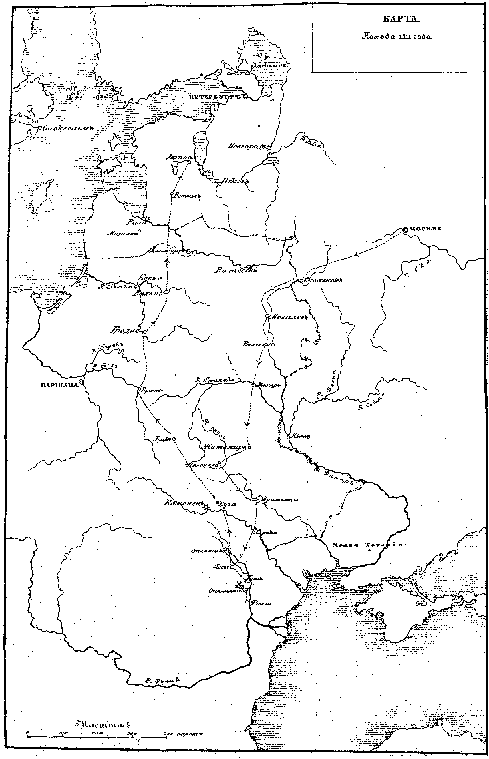 Карта похода 1711 года.