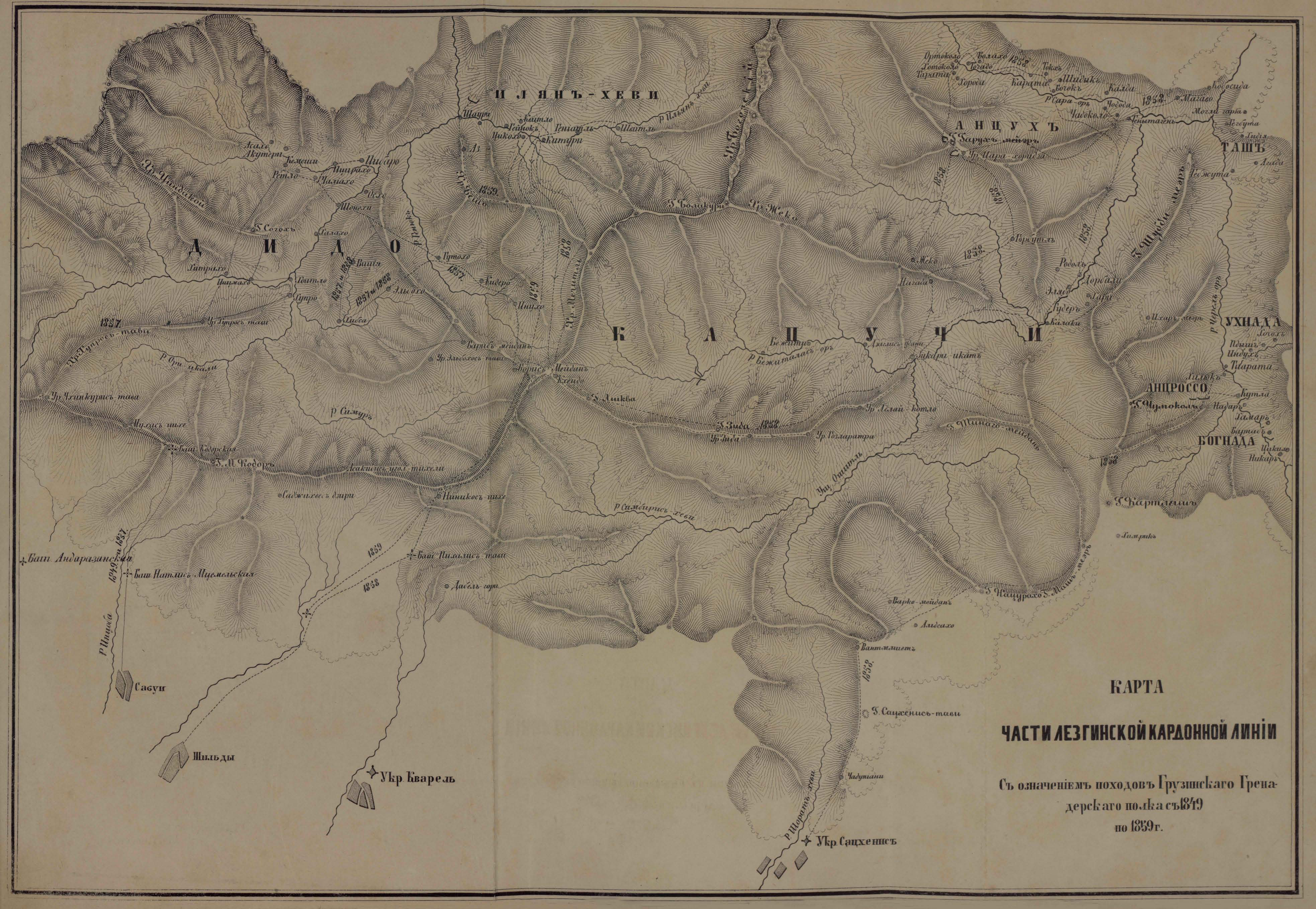 Часть Лезгинской кардонной линии с означением походов Грузинского Гренадерского полка с 1849 по 1859 год