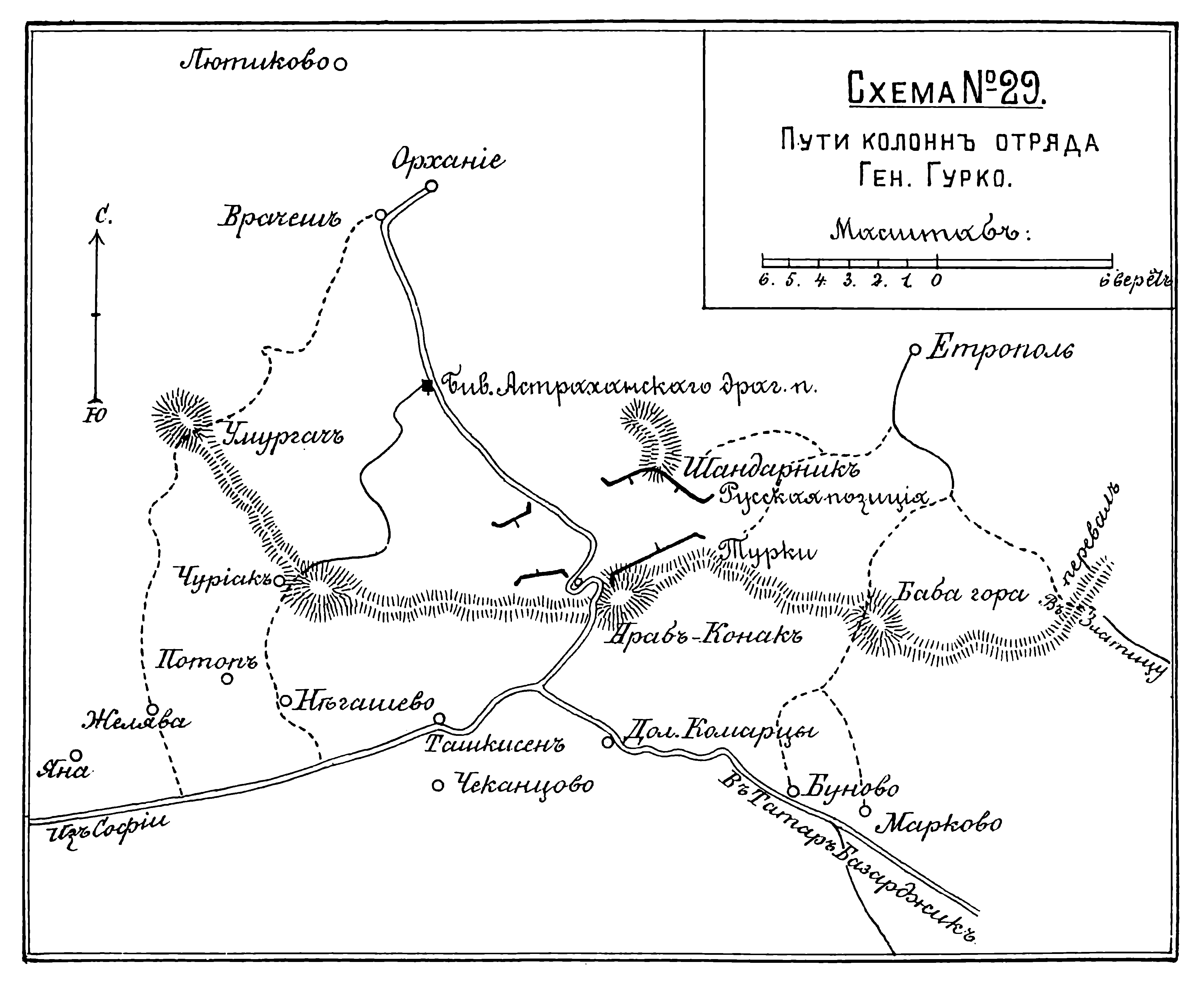 Пути колонн отряда генерала Гурко