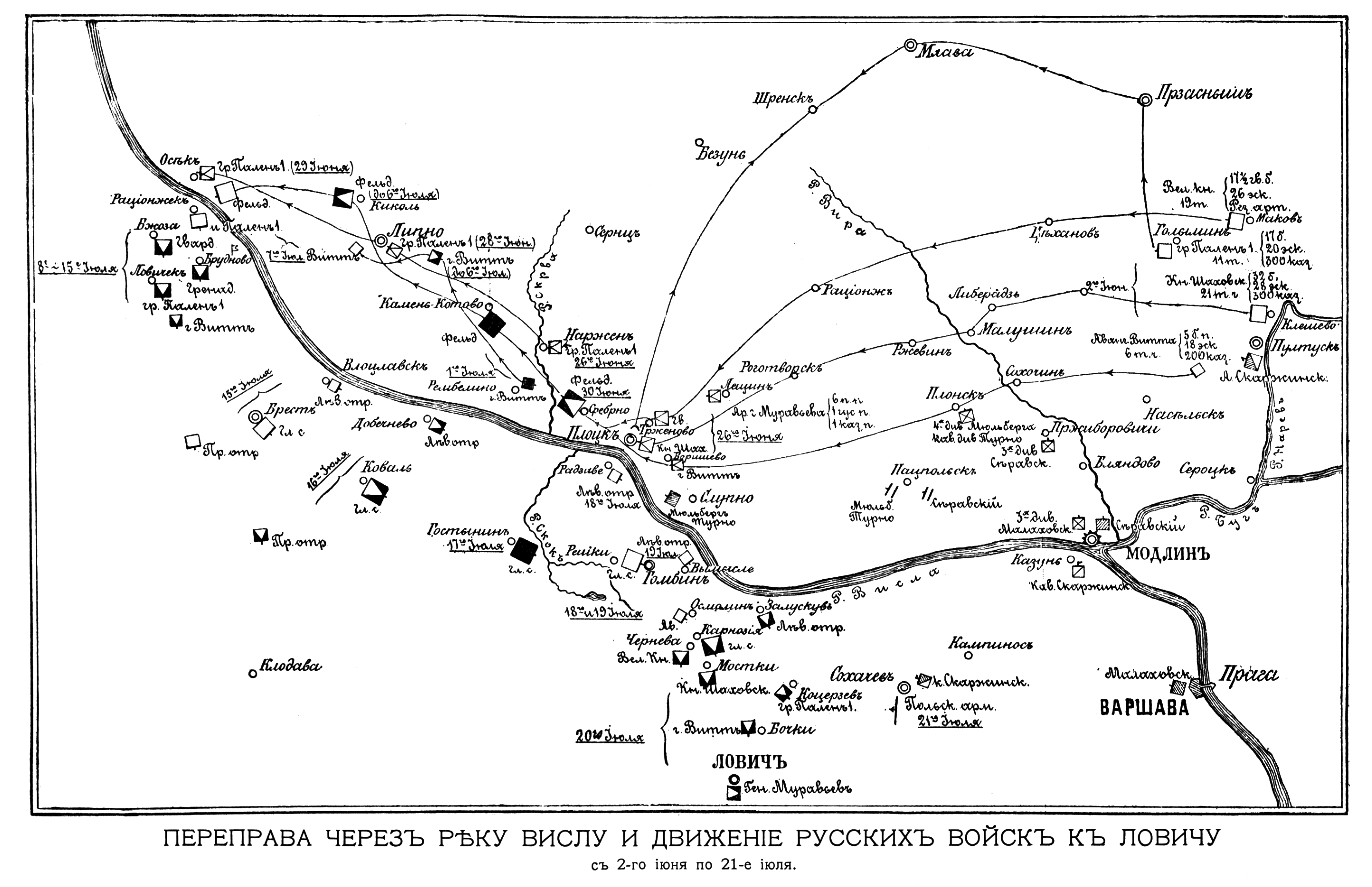 Переправа через реку Вислу и движение русских войск к Ловичу с 2 июня по 21 июля