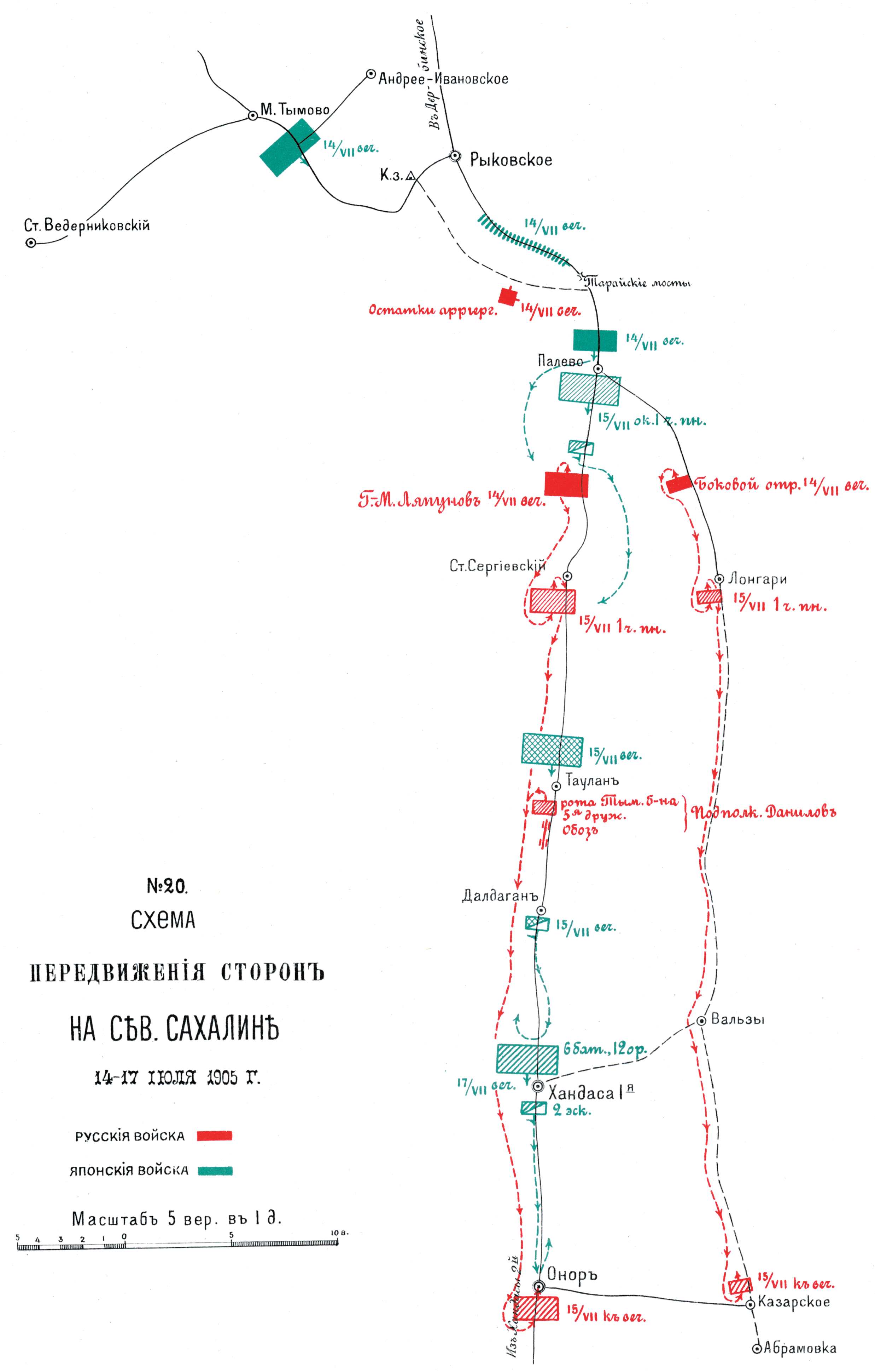 Передвижения сторон на Северном Сахалине 14-17 июля 1905 года