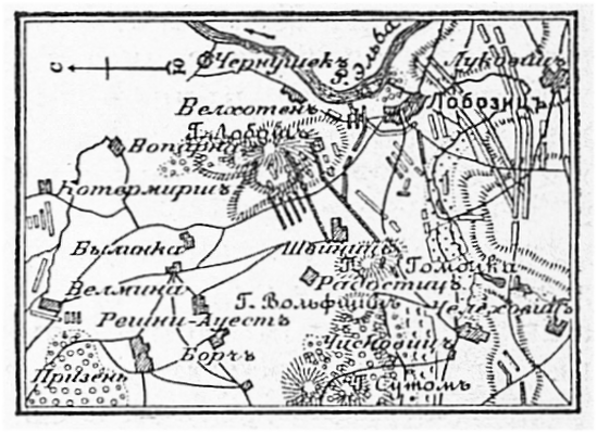 Карта-схема битвы при Фрауштадте, 13 (3) февраля 1706 года