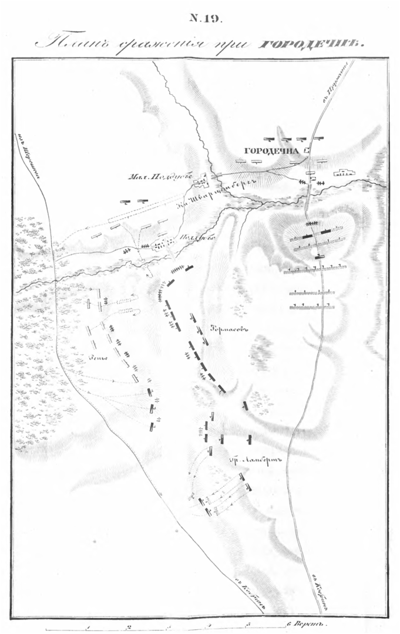 Карта-схема битвы при Фрауштадте, 13 (3) февраля 1706 года