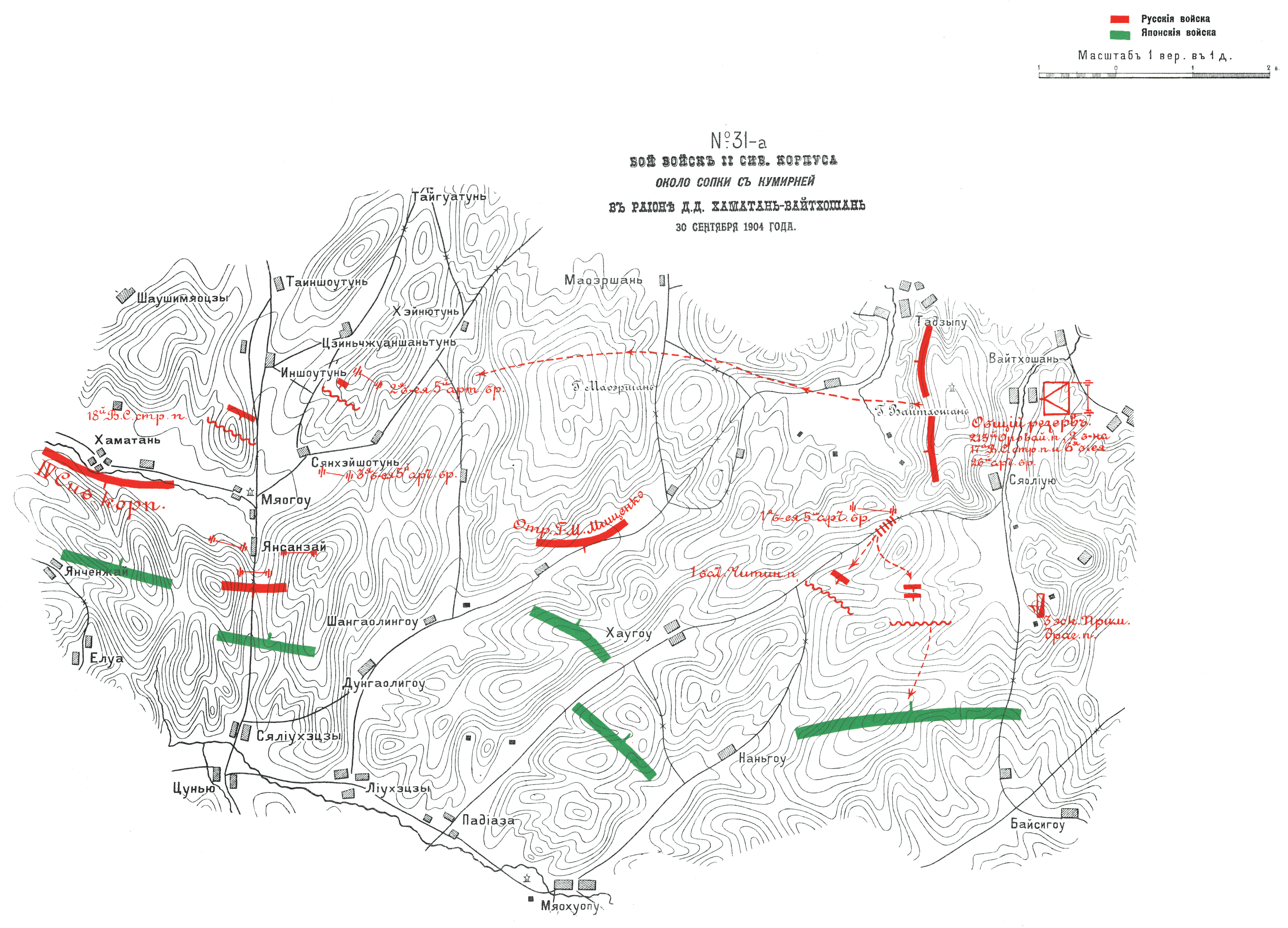 Бой войск II Сибирского корпуса около сопки с кумирней в районе деревень Хаматань-Вайтхошань 30 сентября 1904 года