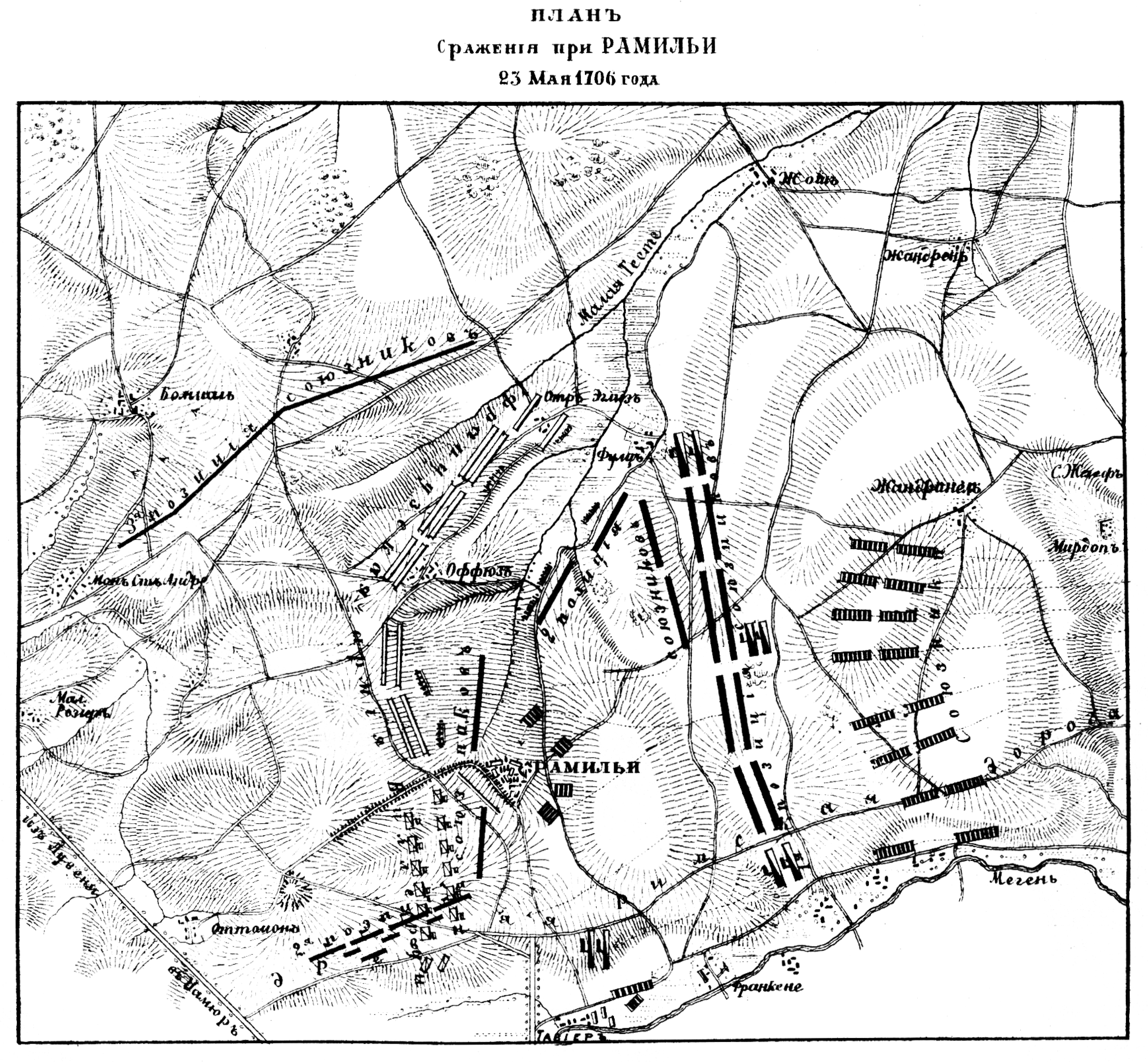 Карта-схема битвы при Фрауштадте, 13 (3) февраля 1706 года