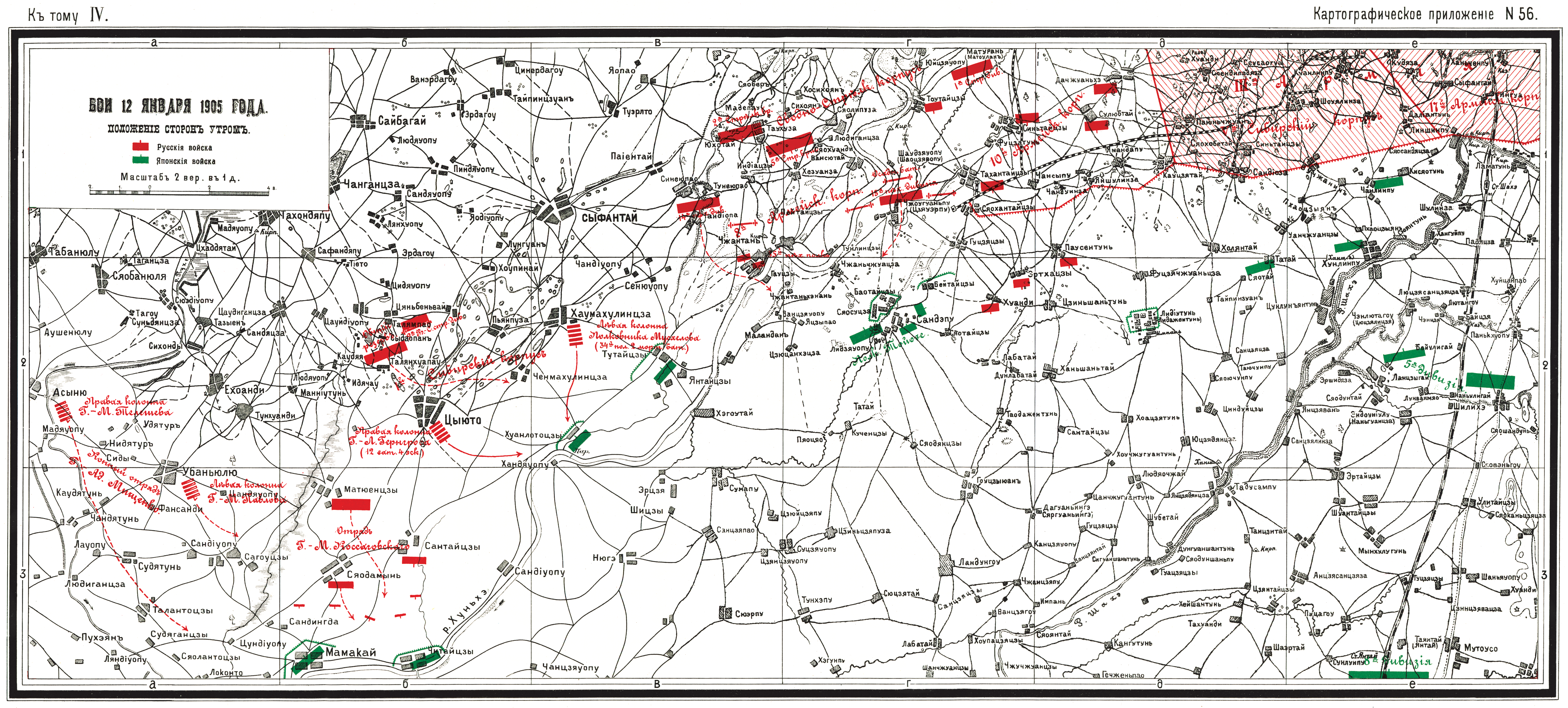 Бои 12 января 1905 года. Положение сторон утром