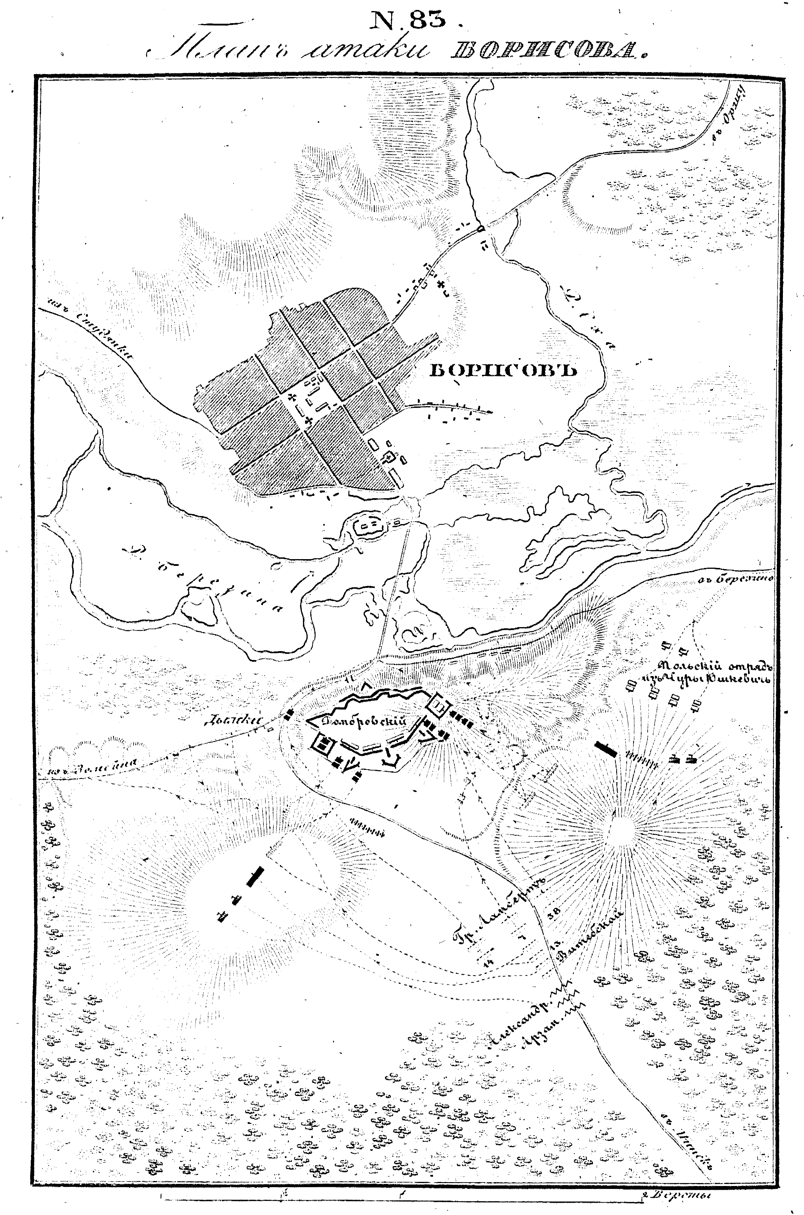 Карта-схема битвы при Фрауштадте, 13 (3) февраля 1706 года