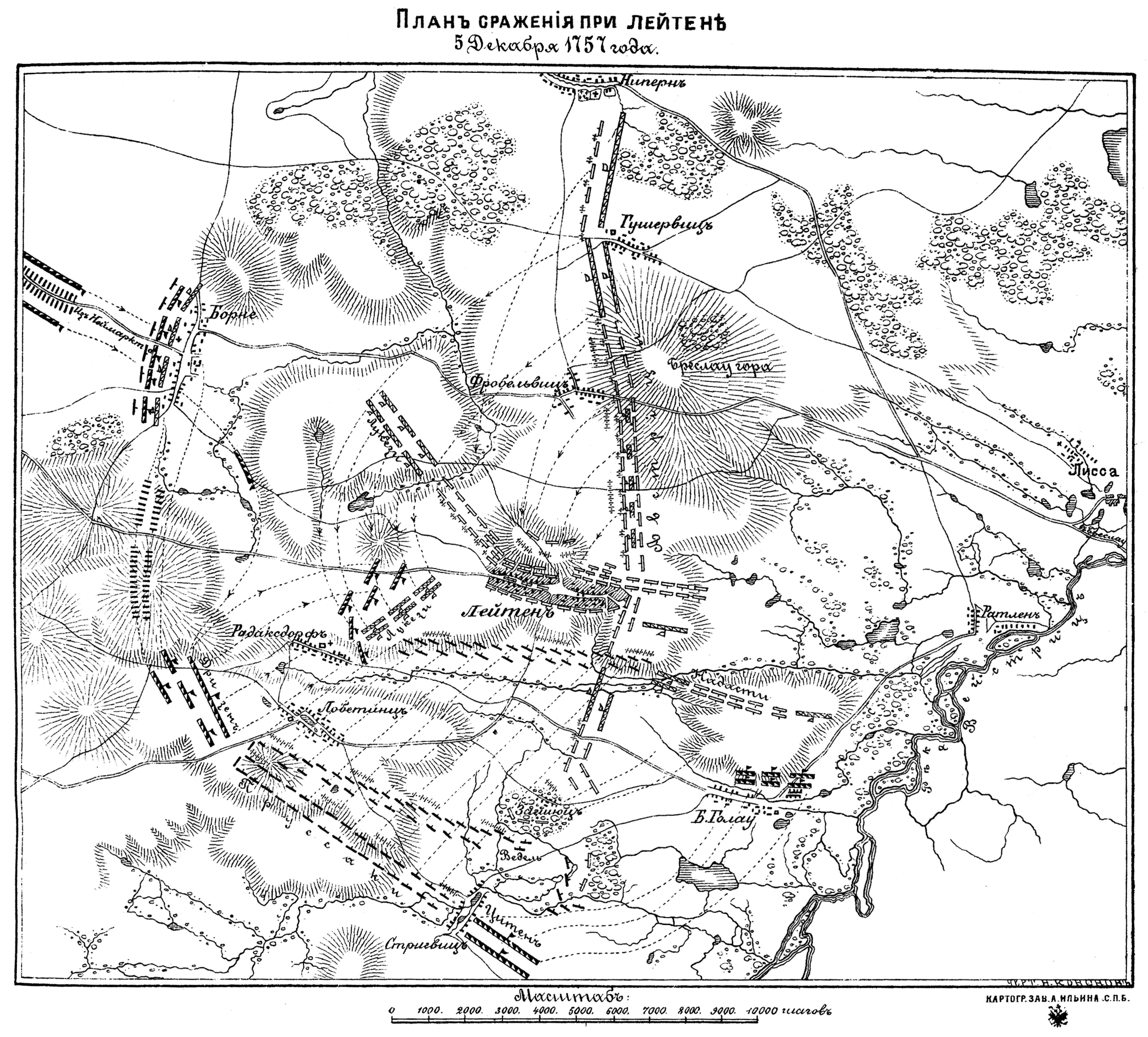 Карта-схема битвы при Фрауштадте, 13 (3) февраля 1706 года