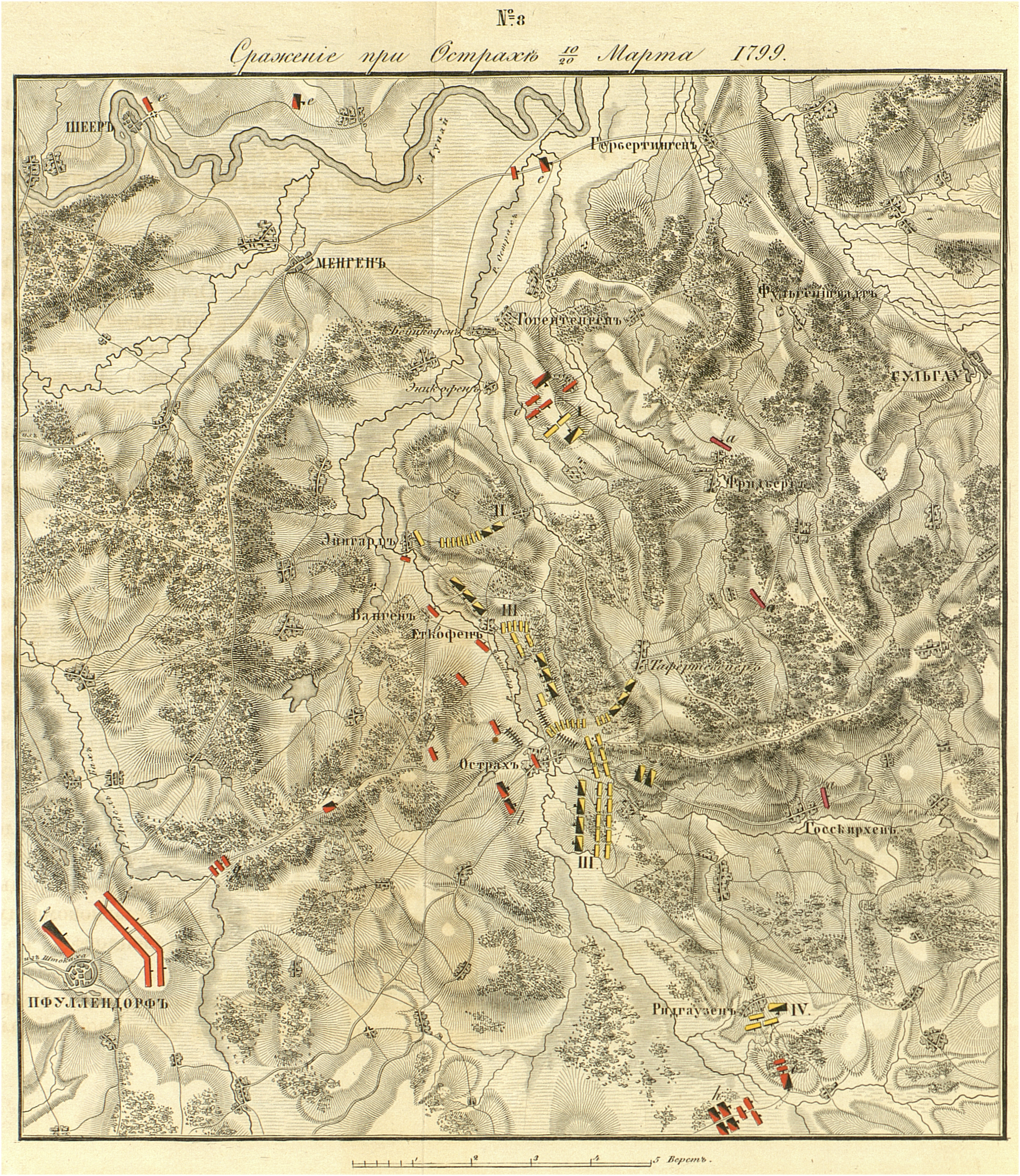 Карта-схема битвы при Фрауштадте, 13 (3) февраля 1706 года