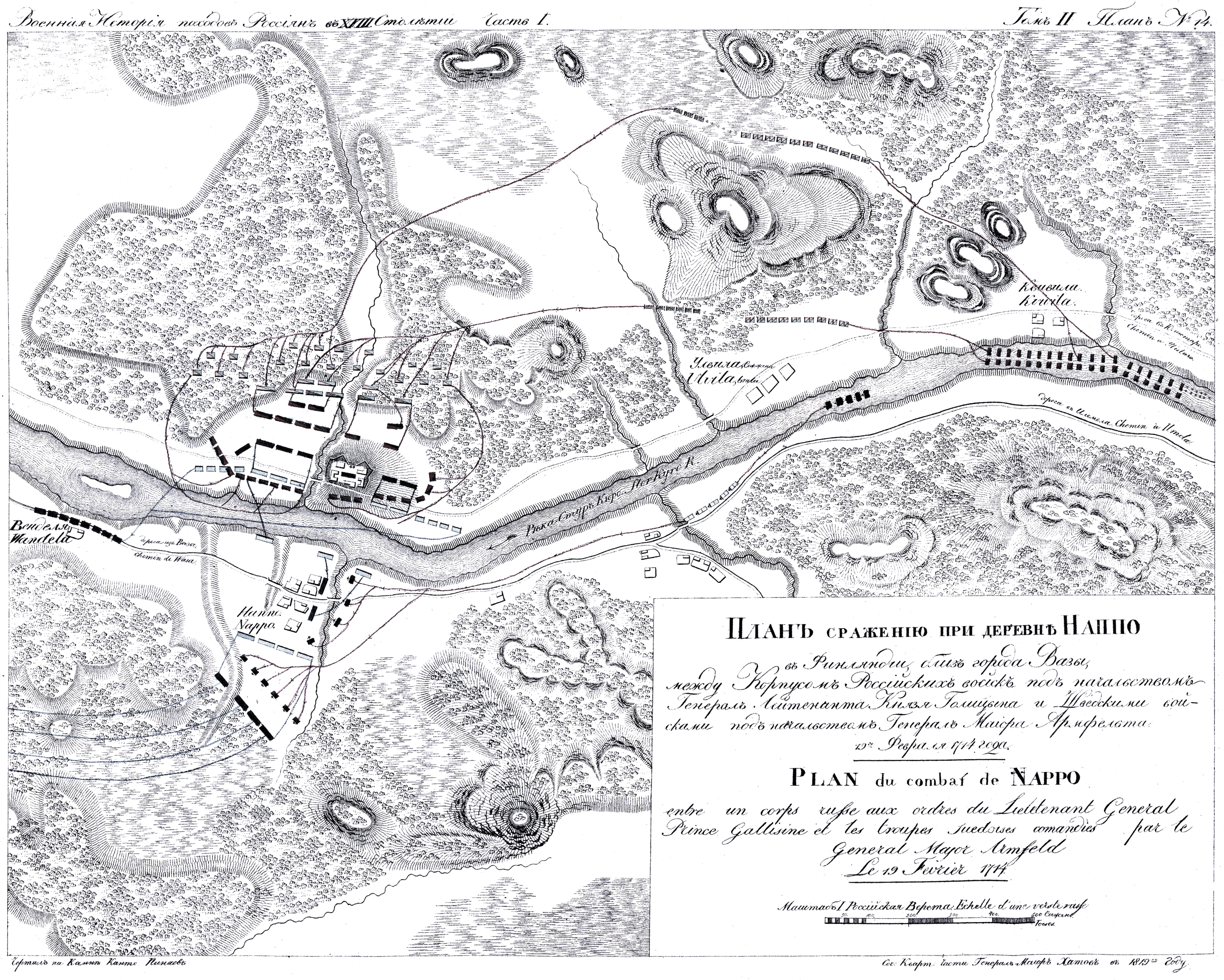 Сражение при деревне Наппо в Финляндии, близ города Вазы, между корпусом Российских войск под начальством Генерал-Лейтенанта Князя Голицына и Шведскими войсками, под начальством Генерал-Майора Армфельда 19 февраля 1714 года