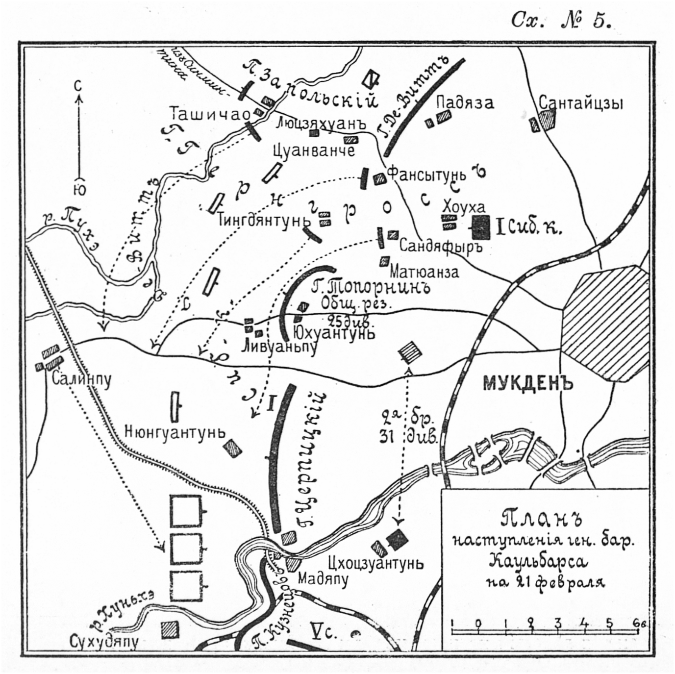 Мукден. План наступления генерала барона Каульбарса на 21 февраля 1905 года